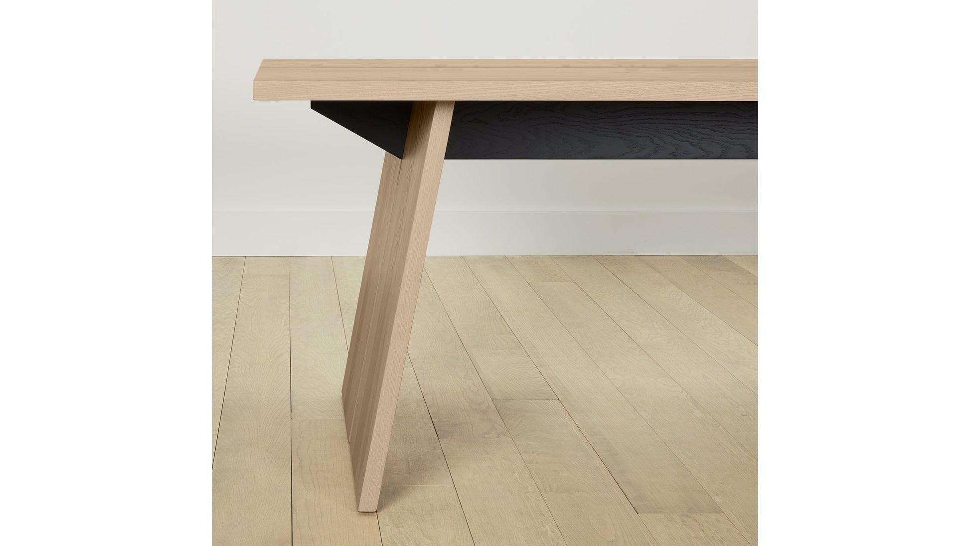 Defined by graphic angles and a striking form, The Carlisle embodies a modern yet timeless design. Each piece is expertly crafted of solid ash, with its striking form accentuated by a two-toned finish and delicate brass detailing.