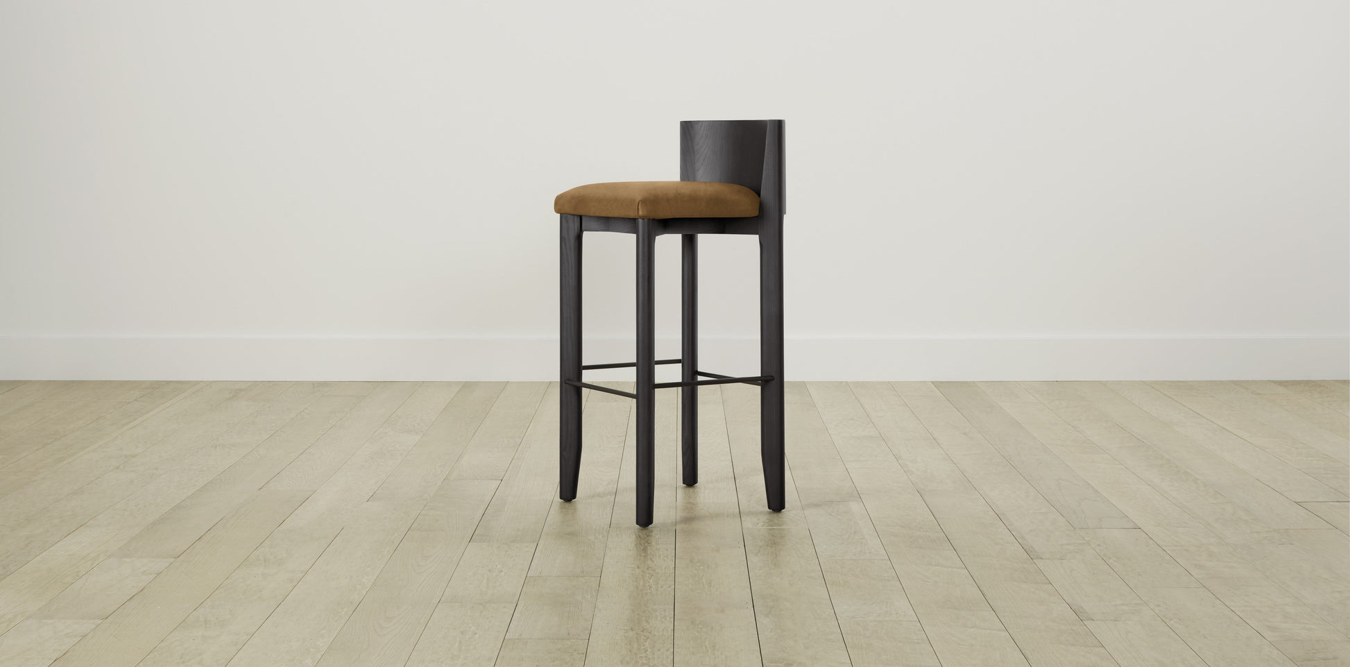 The Delancey with Brushed Brass - Nubuck Leather Saddle Bar and Counter Stool