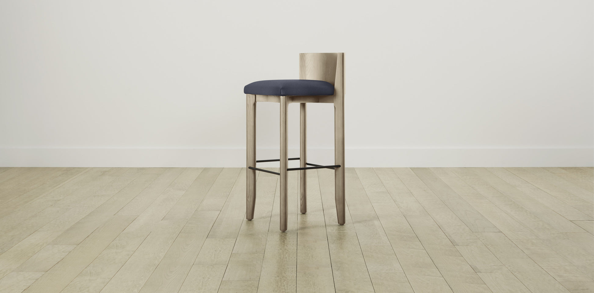 The Delancey with Brushed Brass - Performance Chevron Indigo Bar and Counter Stool