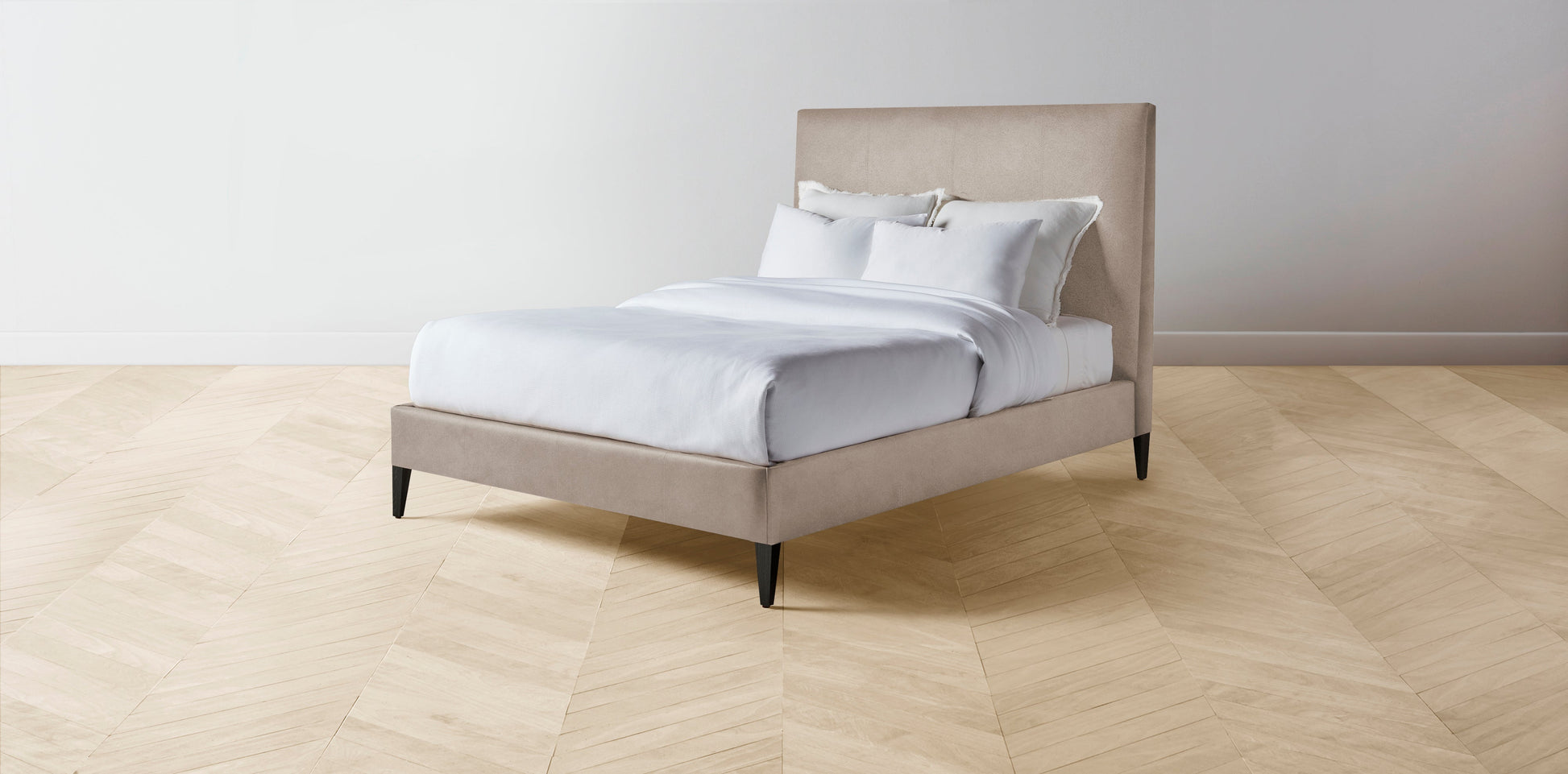 The Essex - Nubuck Leather Fawn Bed - 50" Headboard - Upholstered on reverse