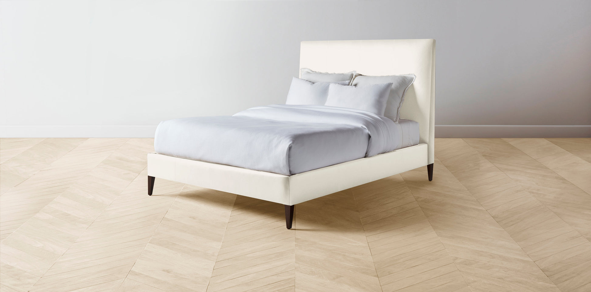 The Essex - Pebbled Leather Swan Bed - 50" Headboard - Muslin on reverse