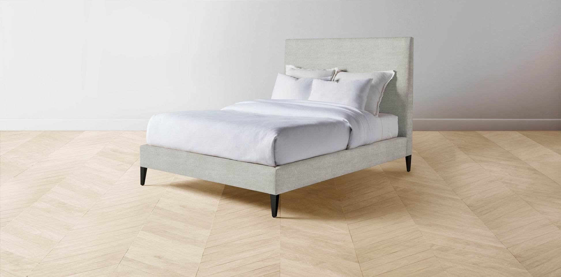 The Essex - Performance Melange Weave Flint Bed - 50" Headboard - Muslin on reverse