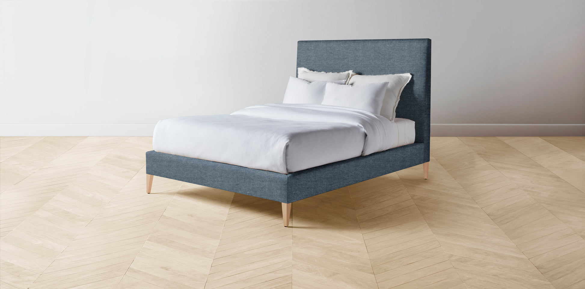 The Essex - Performance Stonewashed Linen Chambray Bed - 56" Headboard - Muslin on reverse