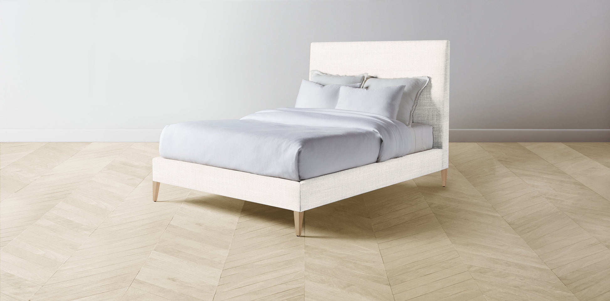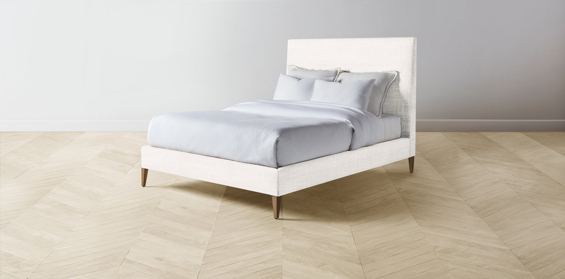 The Essex - Performance Textured Tweed Snow Bed - 50" Headboard - Muslin on reverse