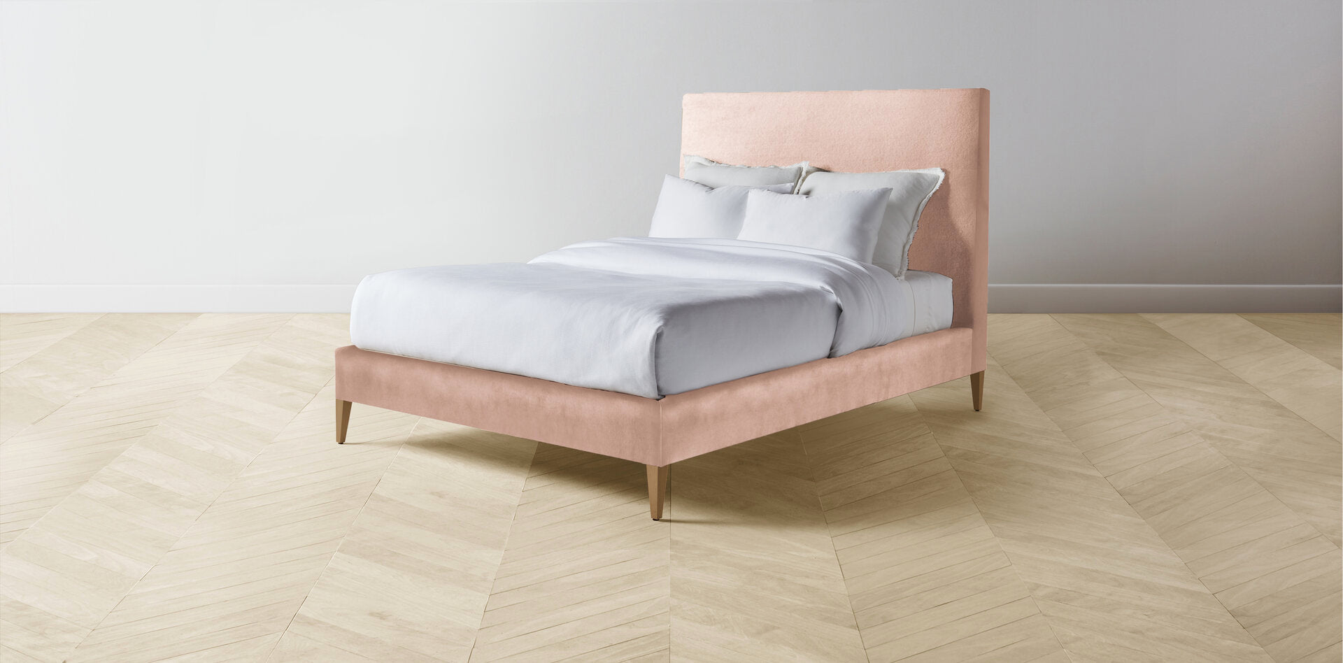 The Essex - Performance Velvet Dusty Rose Bed - 56" Headboard - Muslin on reverse