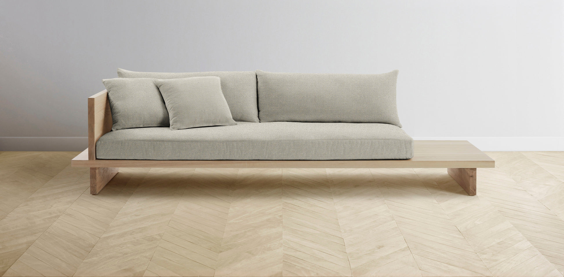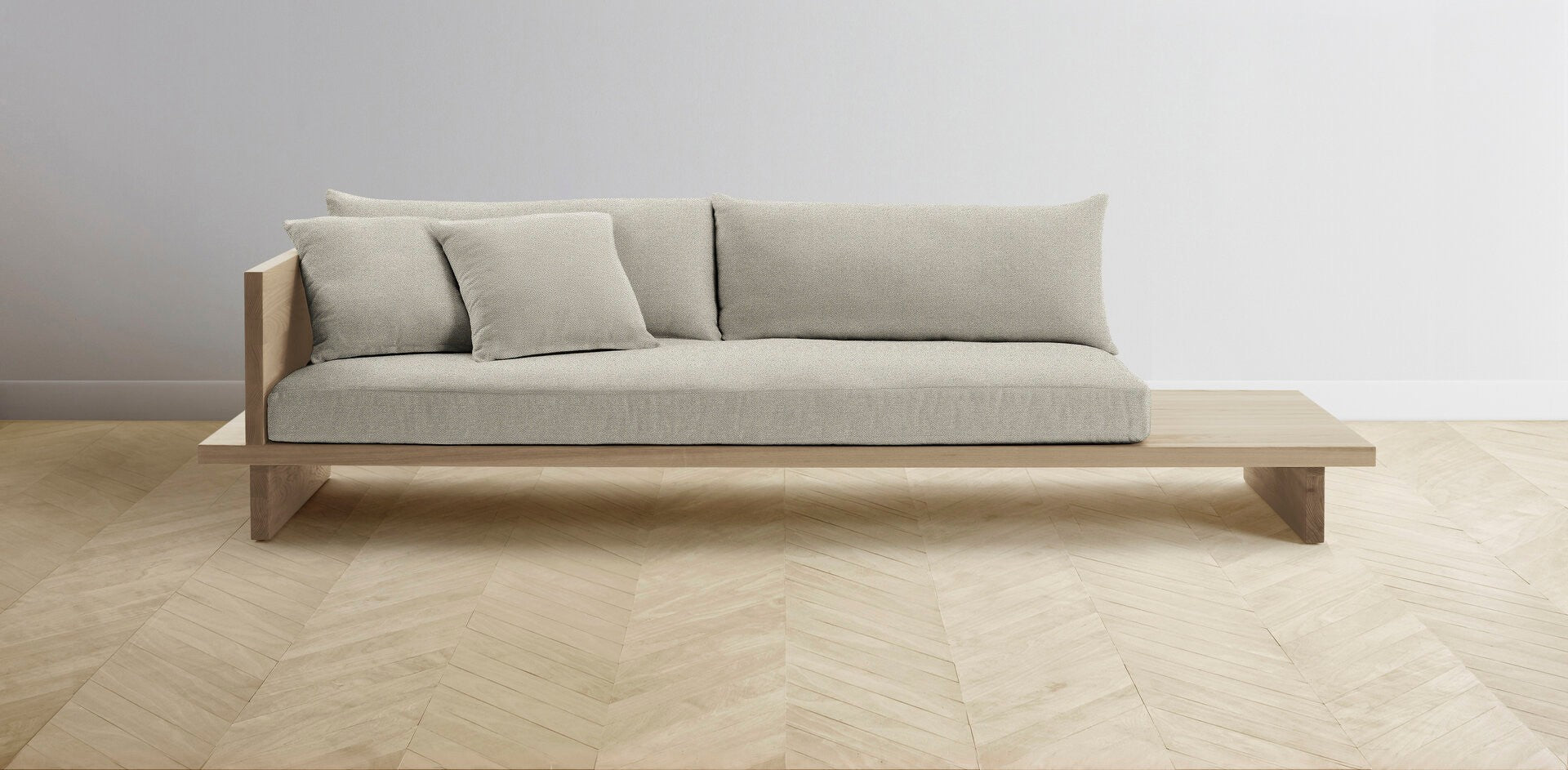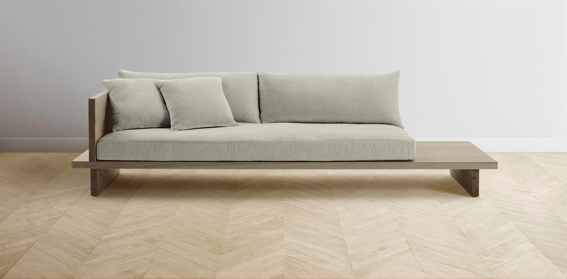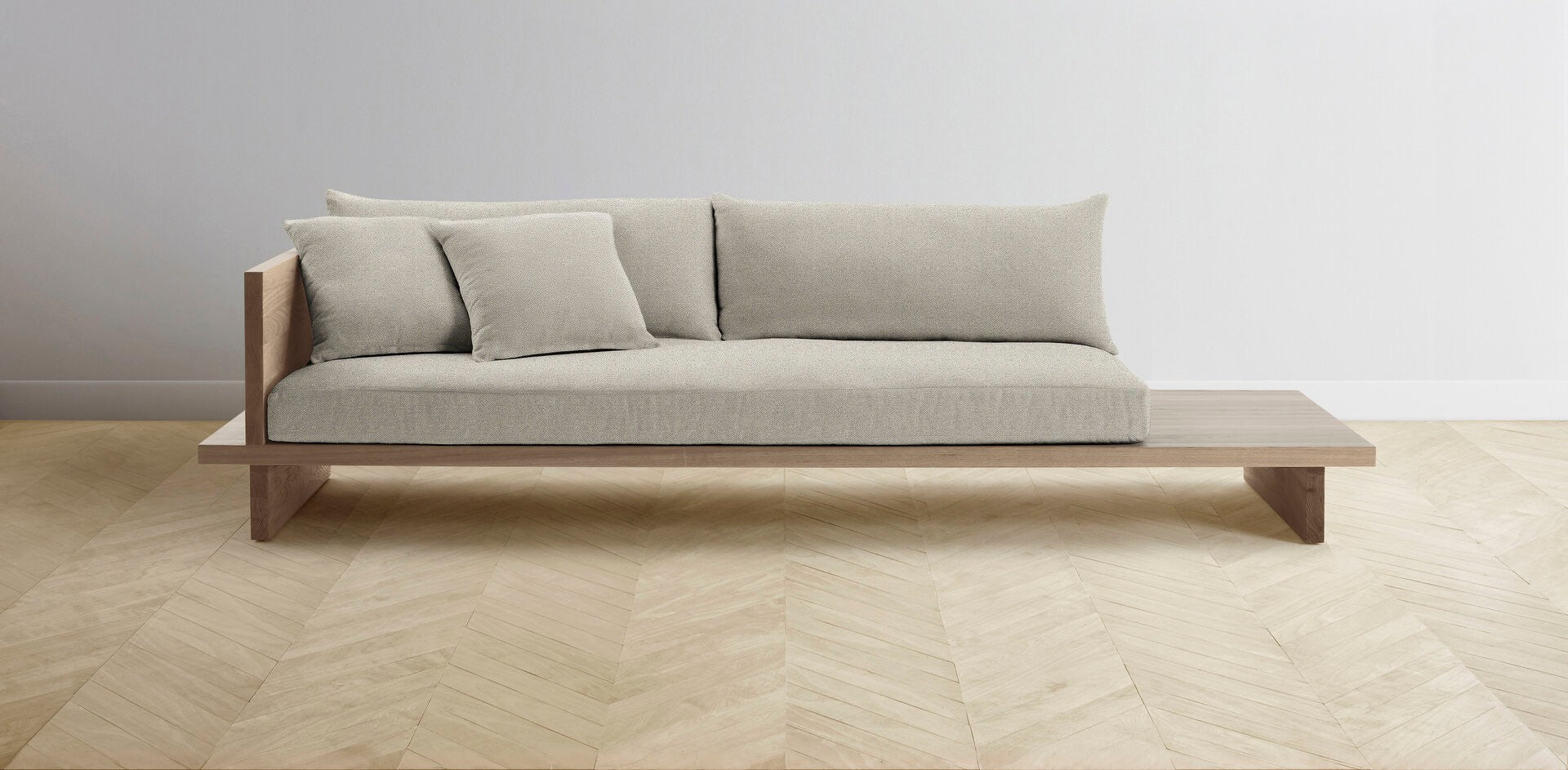 The Muir Arm on Left - Performance Basketweave Pebble Sofa