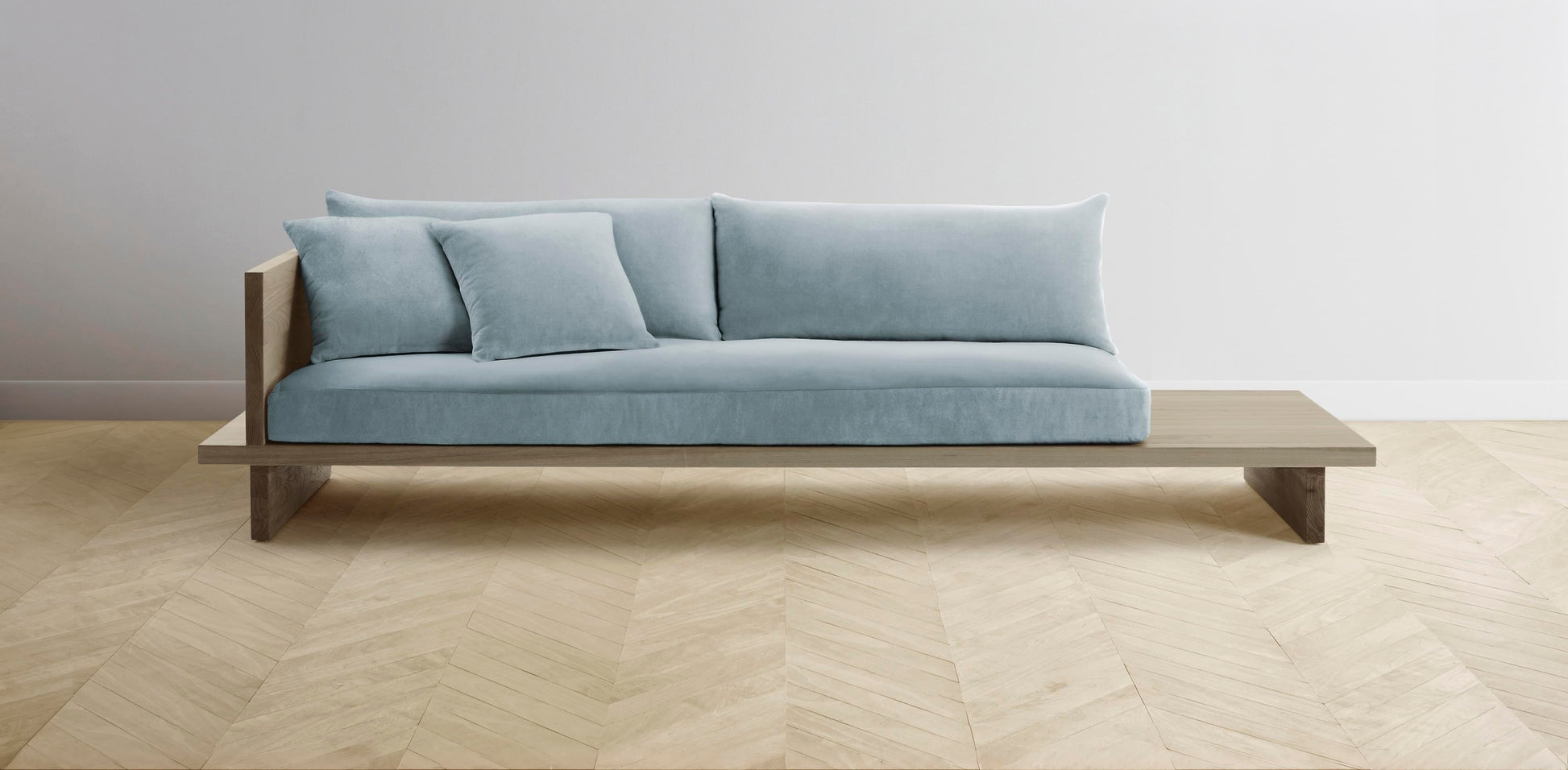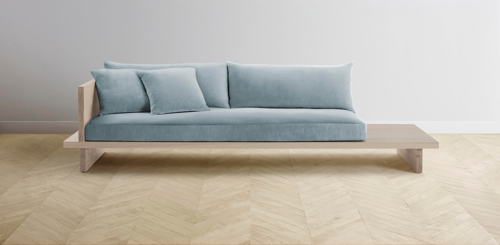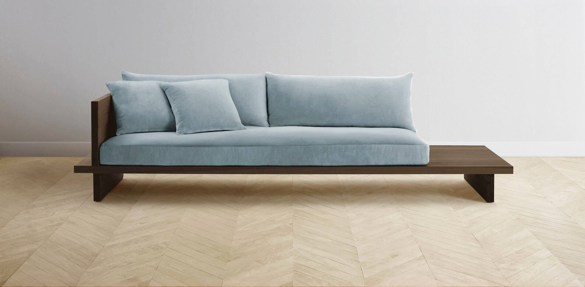 The Muir Arm on Left - Performance Velvet Sky Sofa