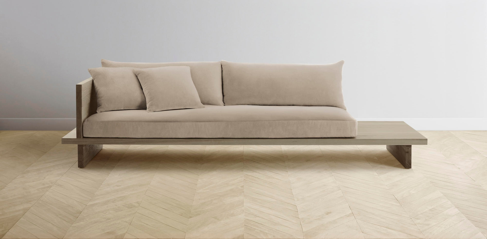 The Muir Arm on Left - Performance Velvet Taupe Sofa