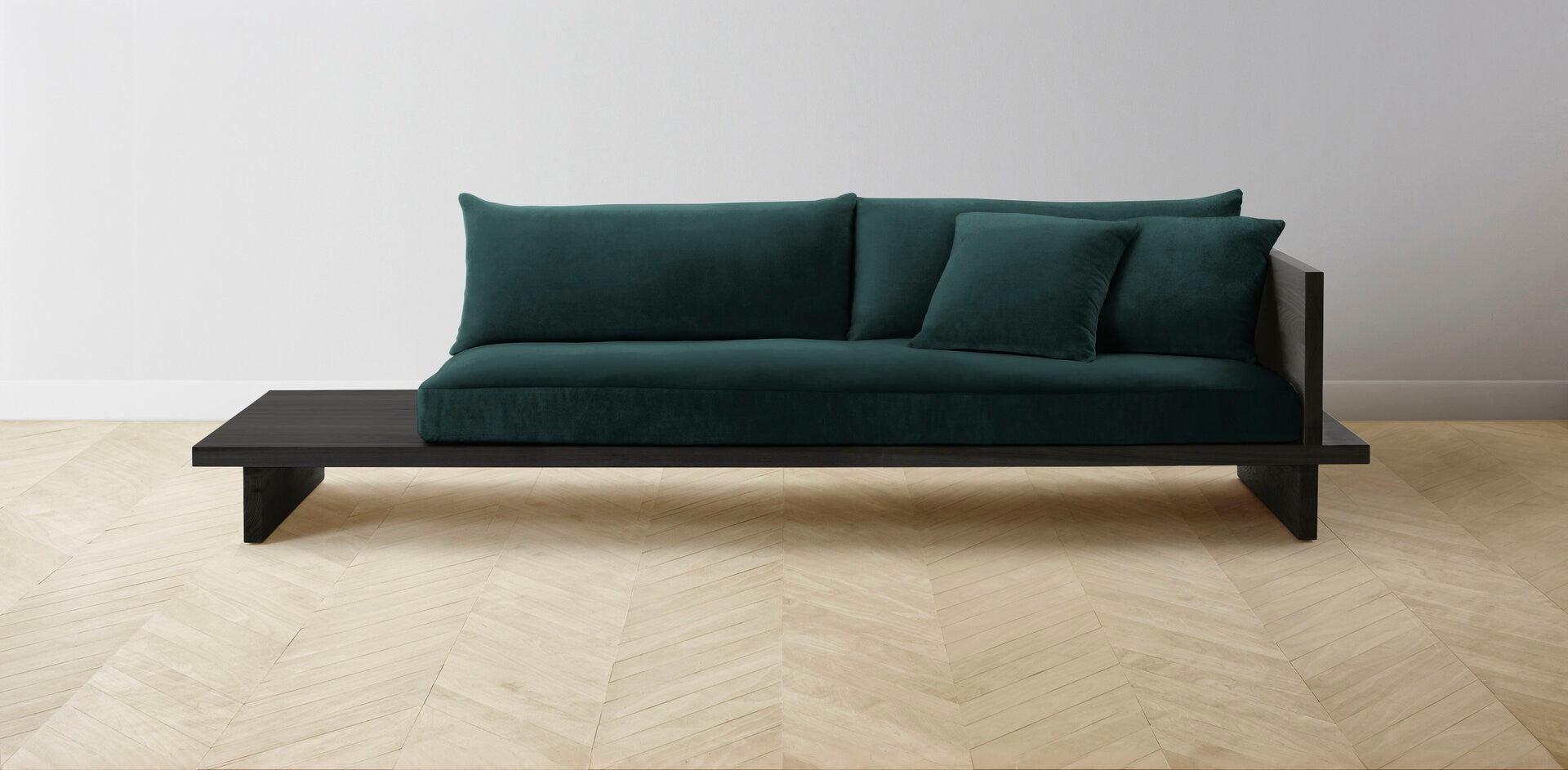 The Muir Arm on Right - Performance Velvet Emerald Sofa