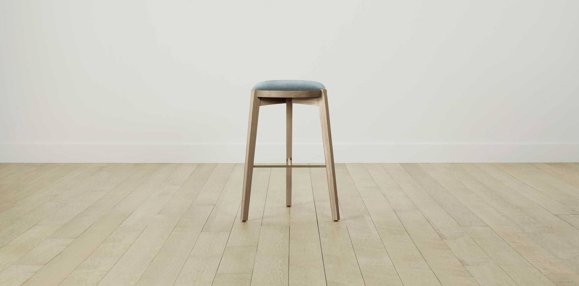 The Stanton with Brushed Brass - Mohair Slate Blue Bar and Counter Stool