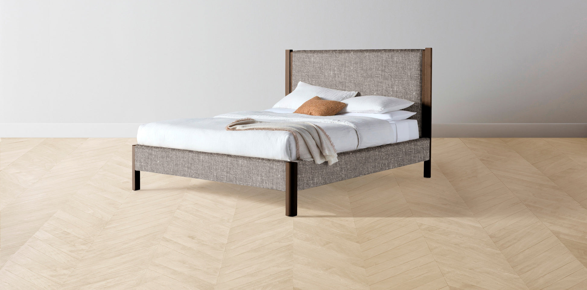 The Thompson - Belgian Linen Carob Bed - 48" Headboard - Muslin on reverse