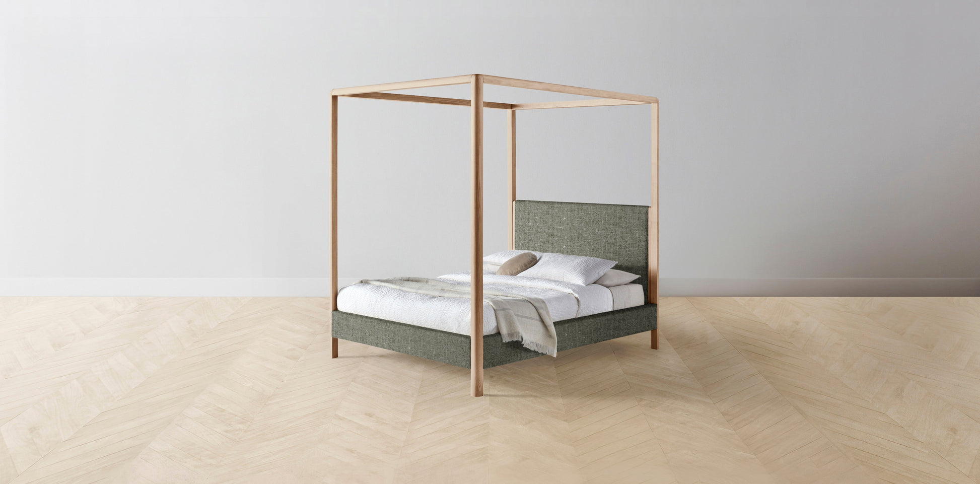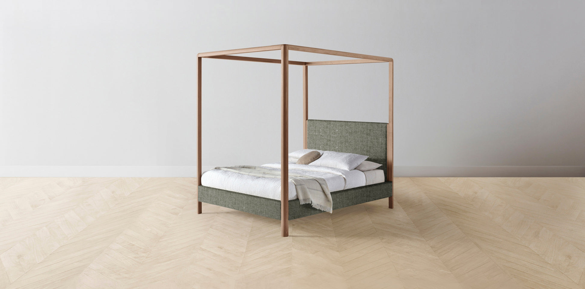 The Thompson - Belgian Linen Thyme Canopy Bed - 48" Headboard - Muslin on reverse