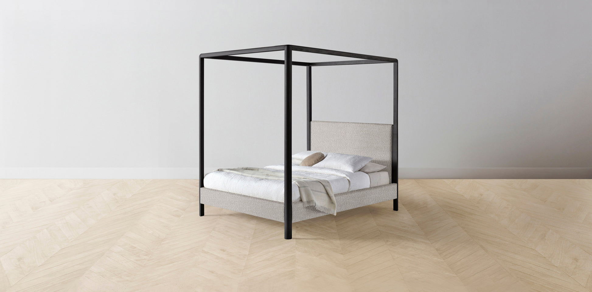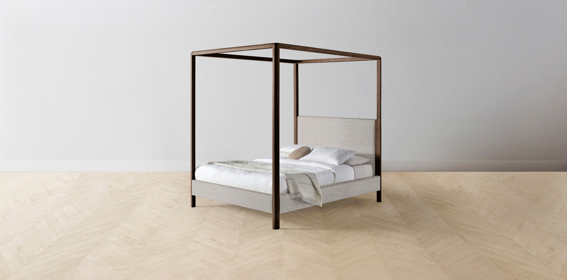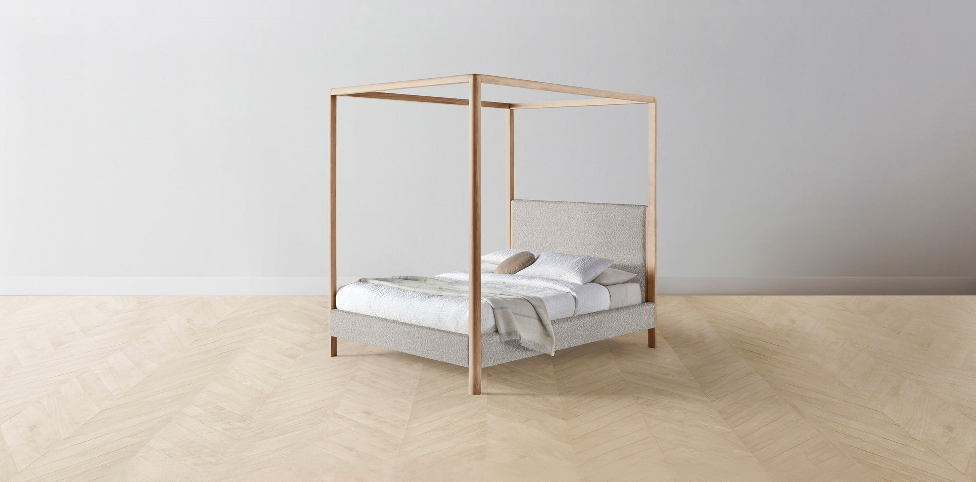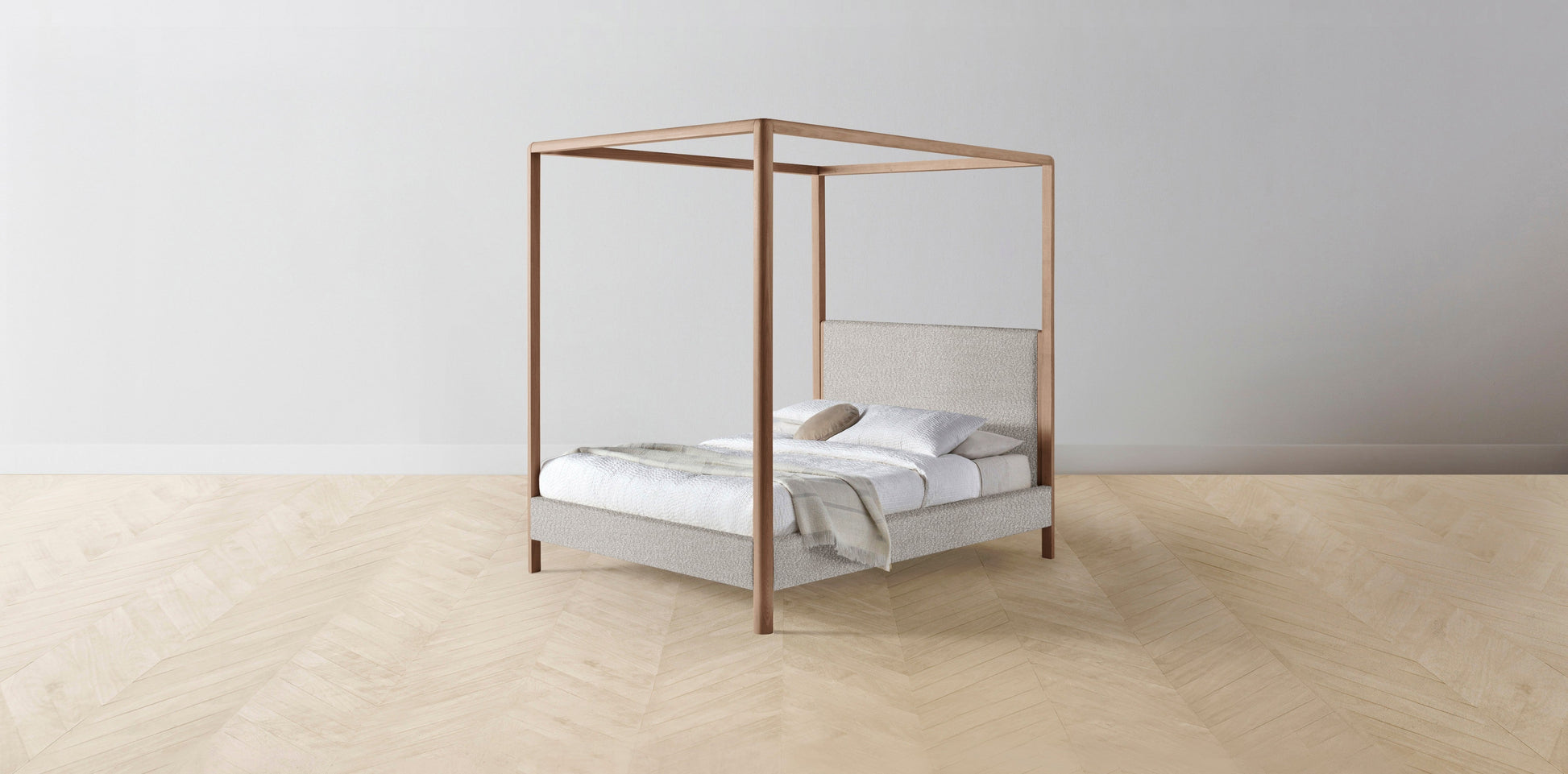 The Thompson - Italian Bouclé Fossil Canopy Bed - 48" Headboard - Muslin on reverse