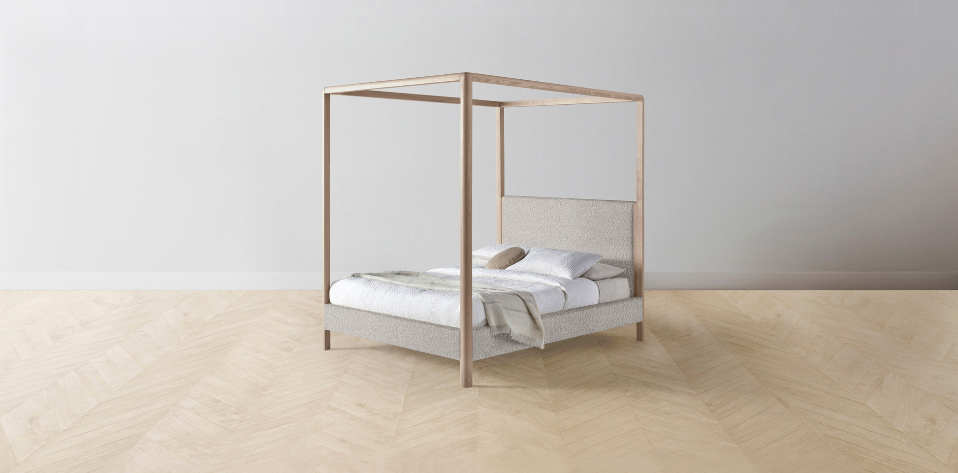 The Thompson - Italian Bouclé Fossil Canopy Bed - 48" Headboard - Upholstered on reverse