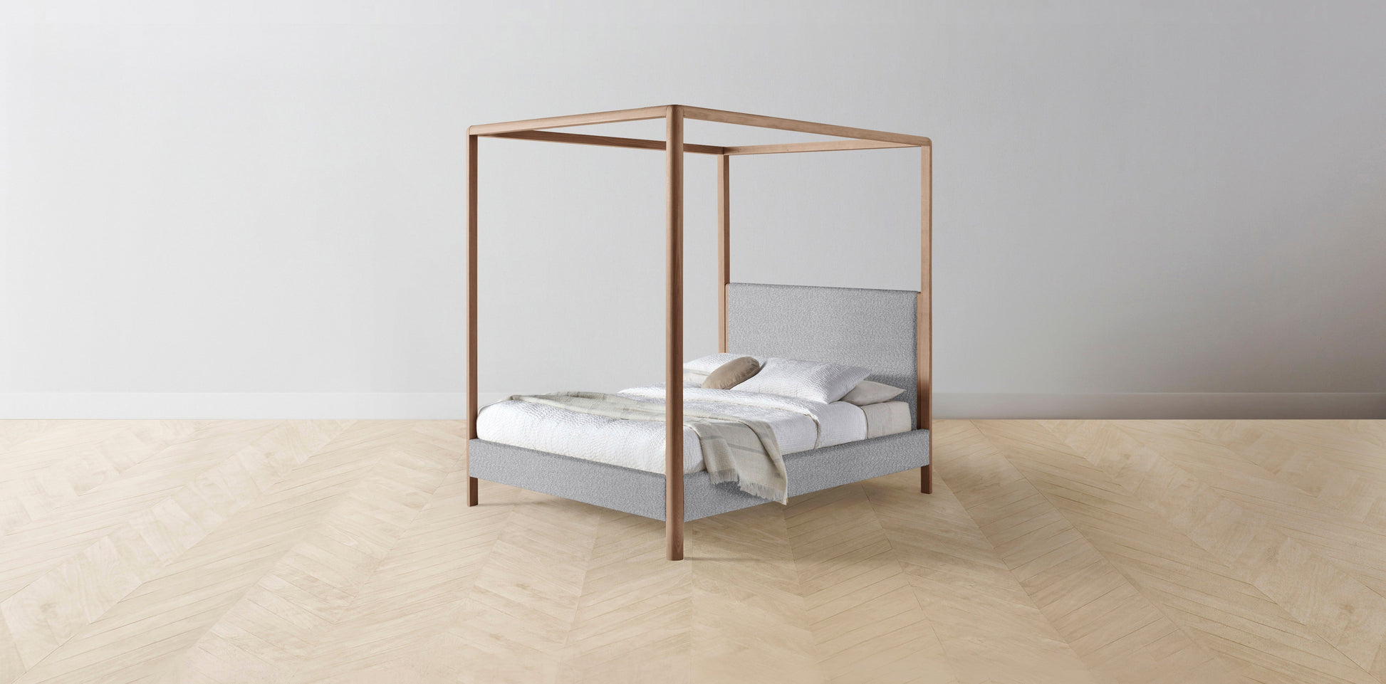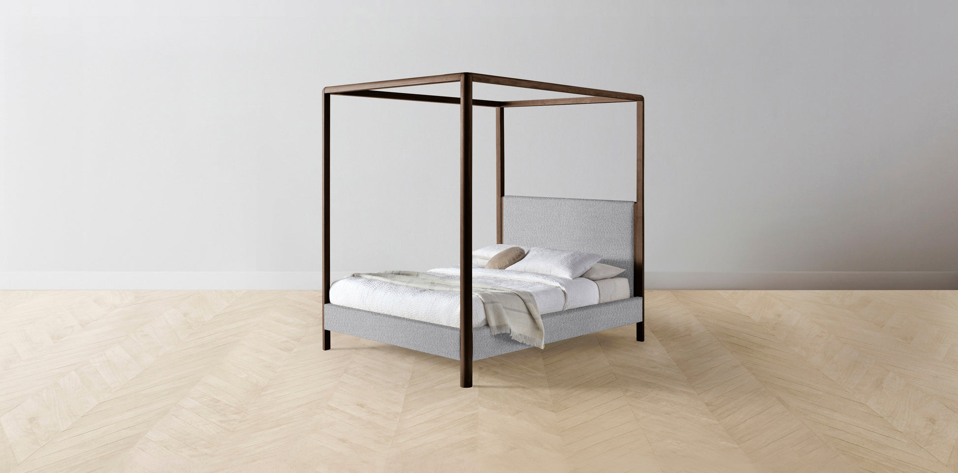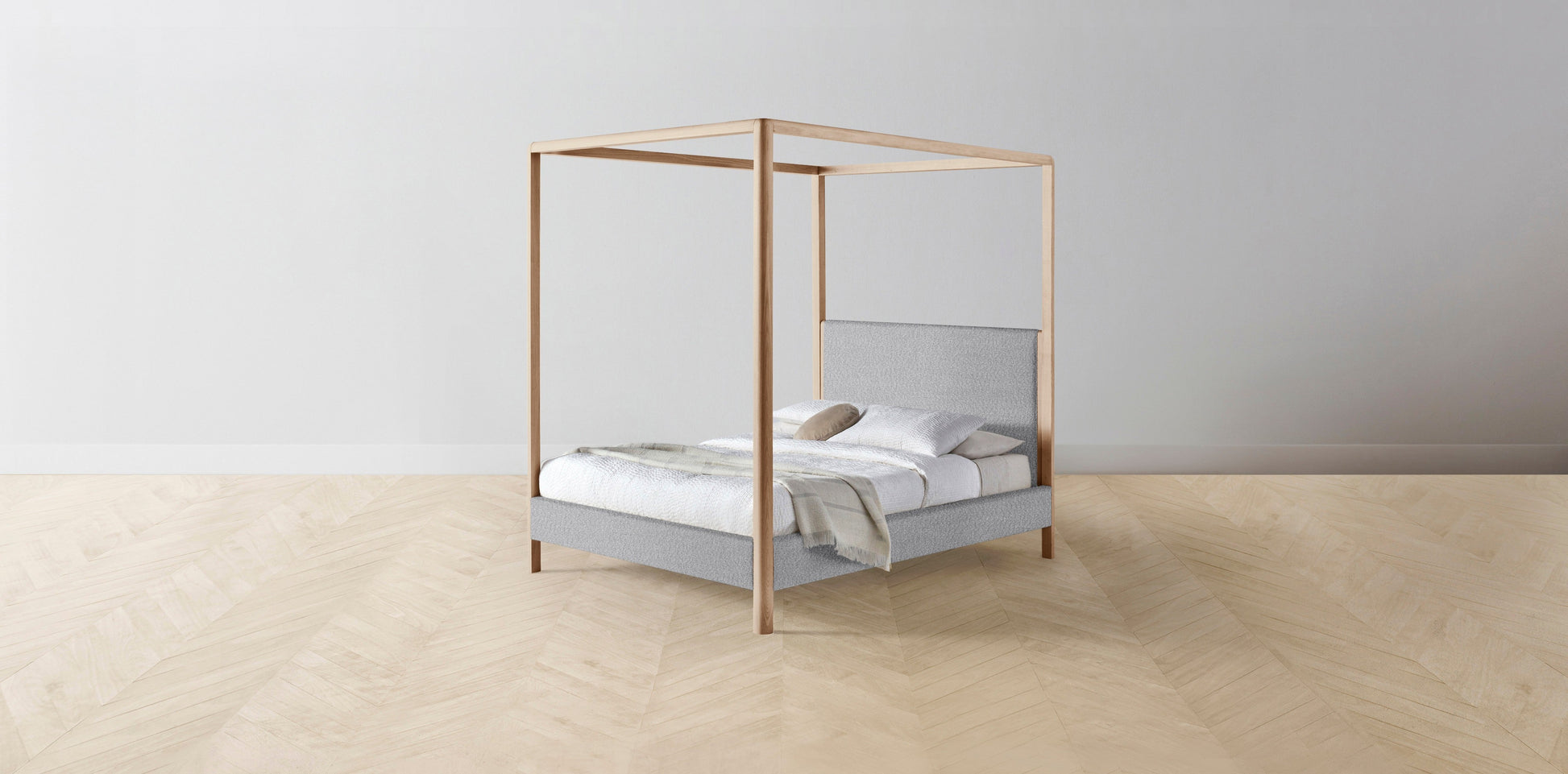 The Thompson - Italian Bouclé Waterfall Canopy Bed - 48" Headboard - Muslin on reverse