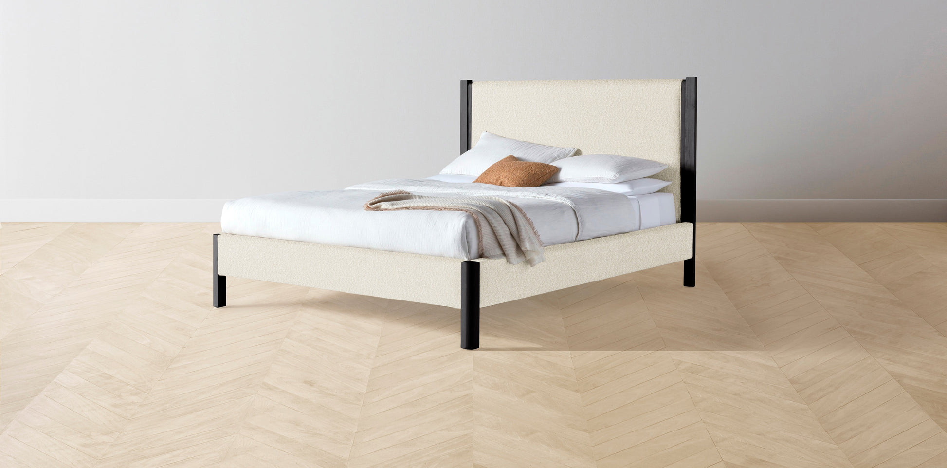 The Thompson - Italian Bouclé White Bed - 48" Headboard - Upholstered on reverse