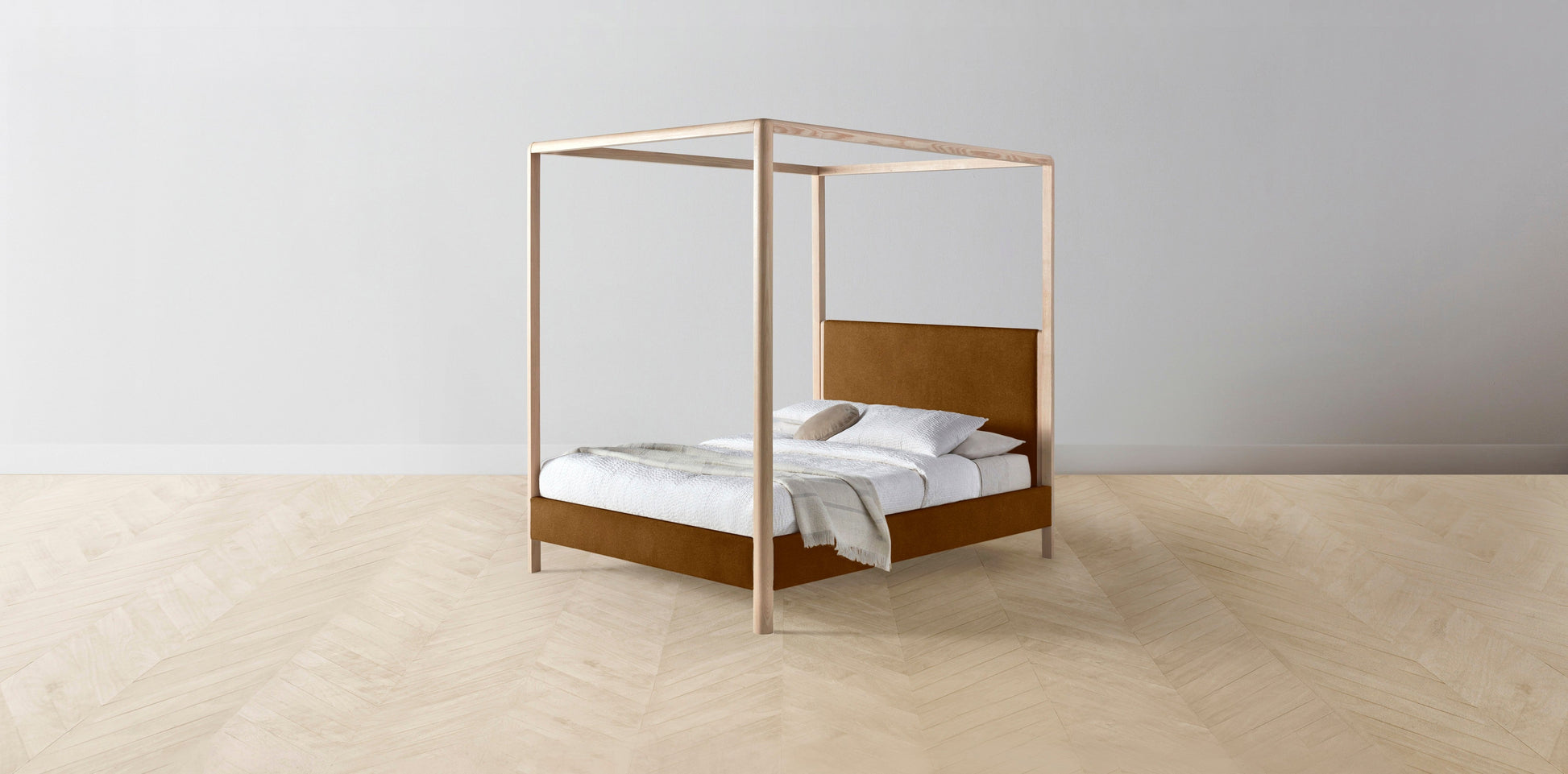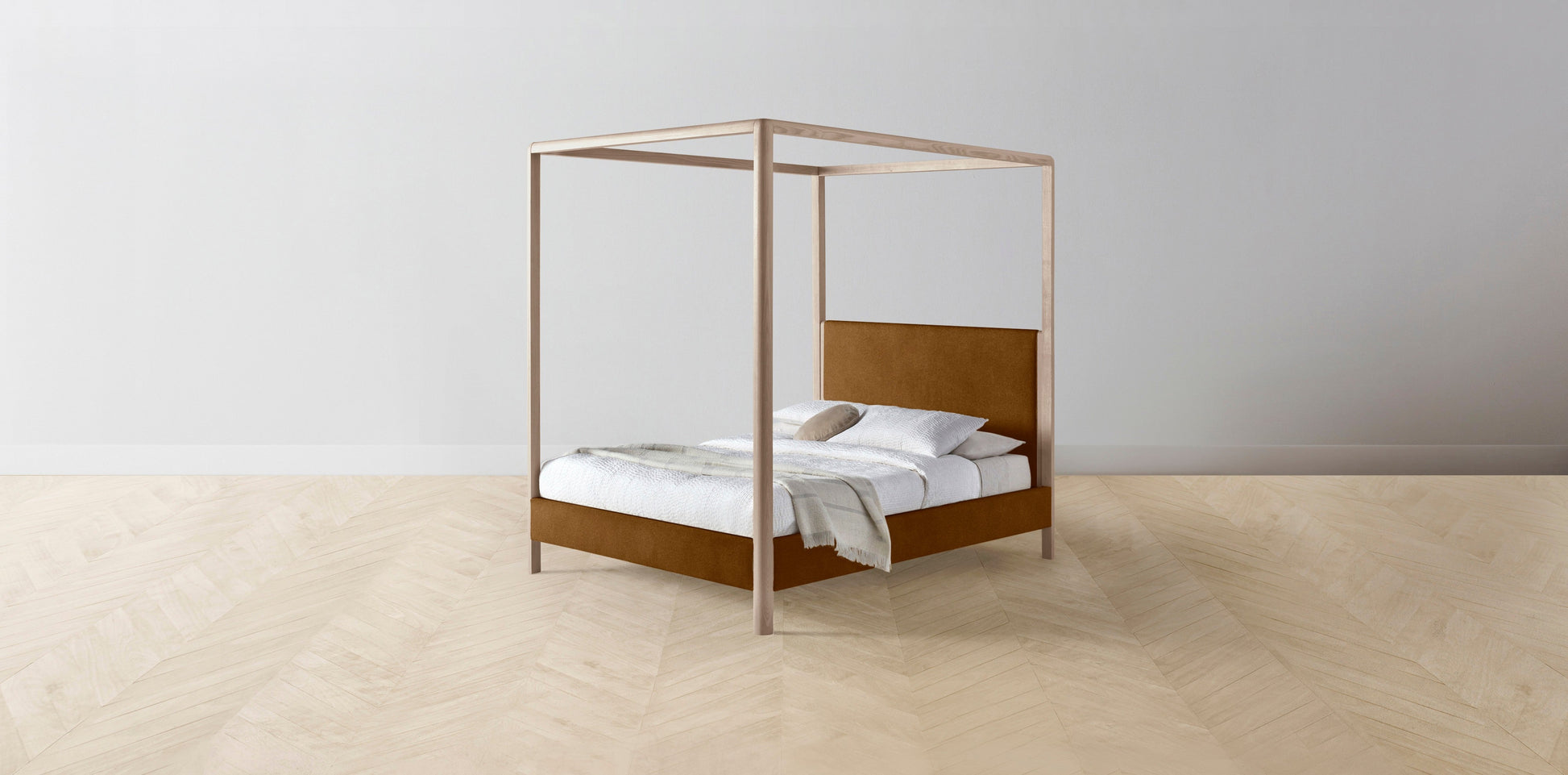 The Thompson - Mohair Brown Sugar Canopy Bed - 48" Headboard - Upholstered on reverse