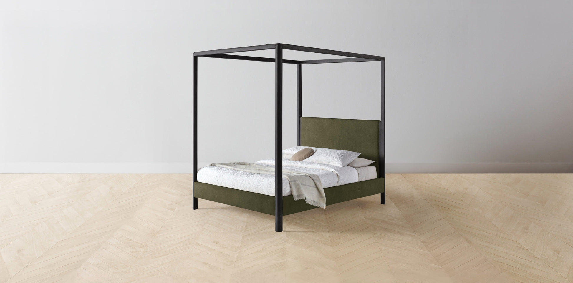 The Thompson - Mohair Moss Canopy Bed - 48" Headboard - Muslin on reverse