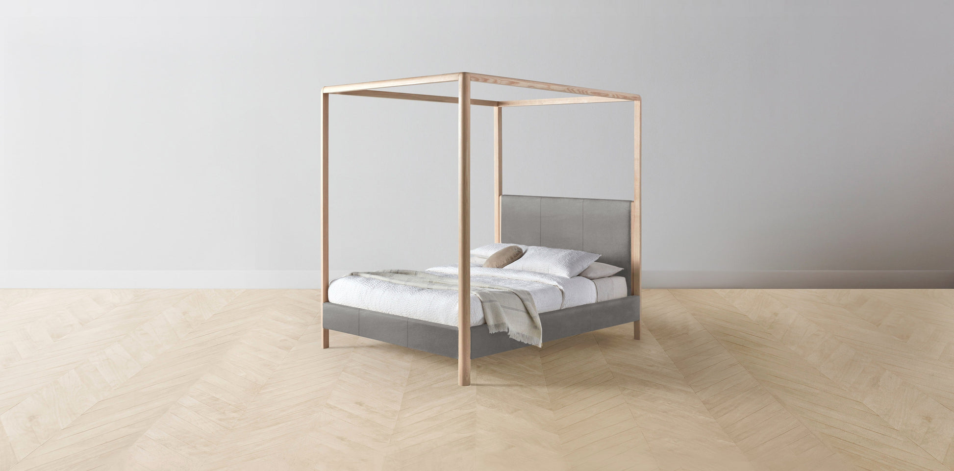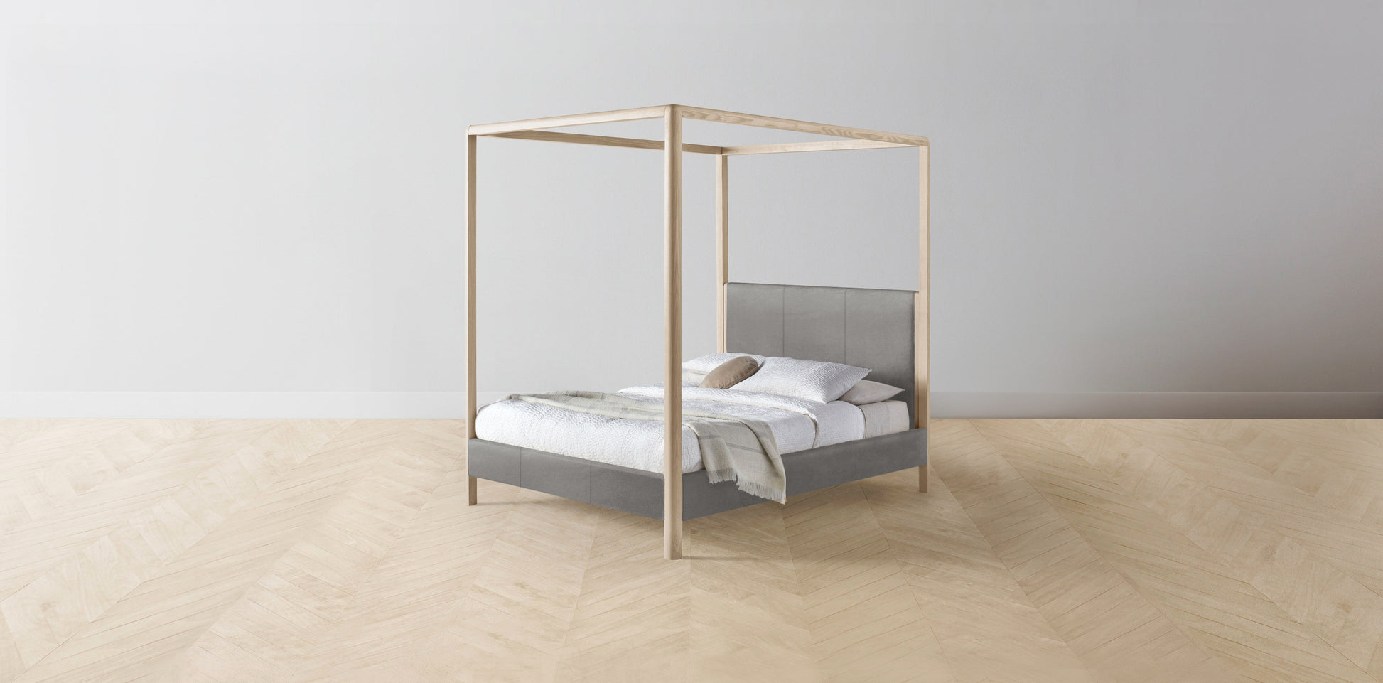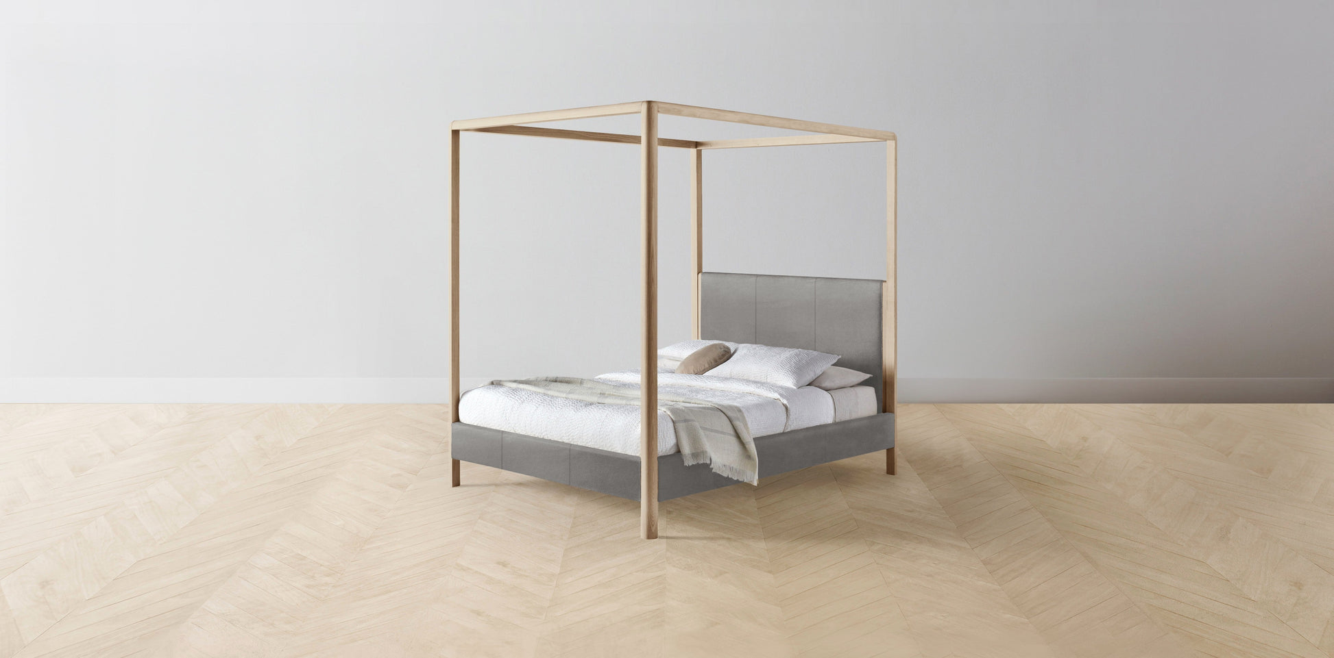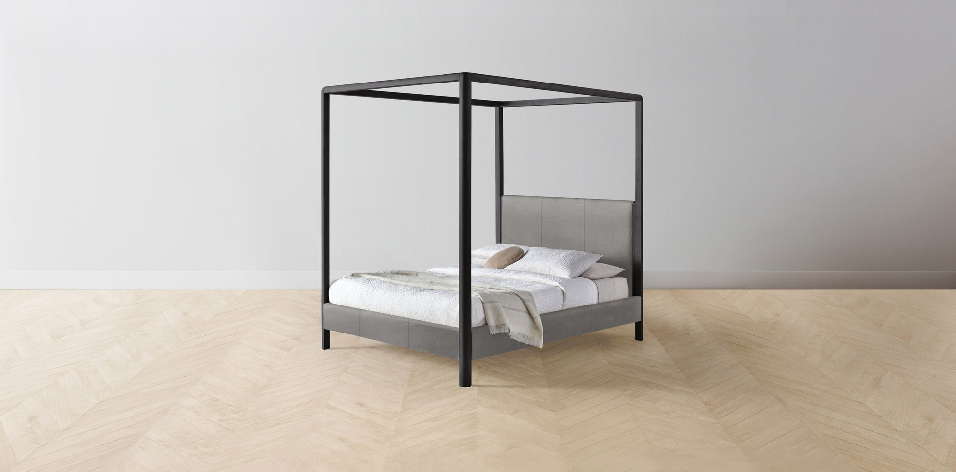 The Thompson - Nubuck Leather Asphalt Canopy Bed - 48" Headboard - Muslin on reverse