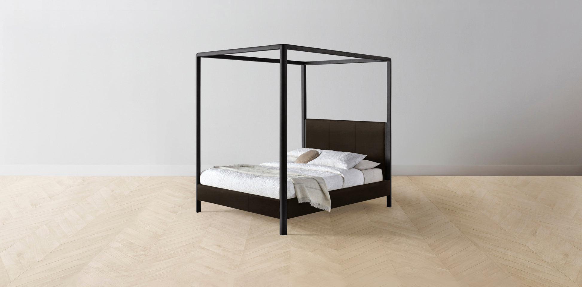 The Thompson - Nubuck Leather Espresso Canopy Bed - 48" Headboard - Muslin on reverse