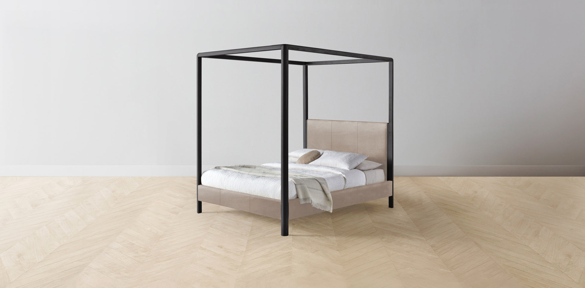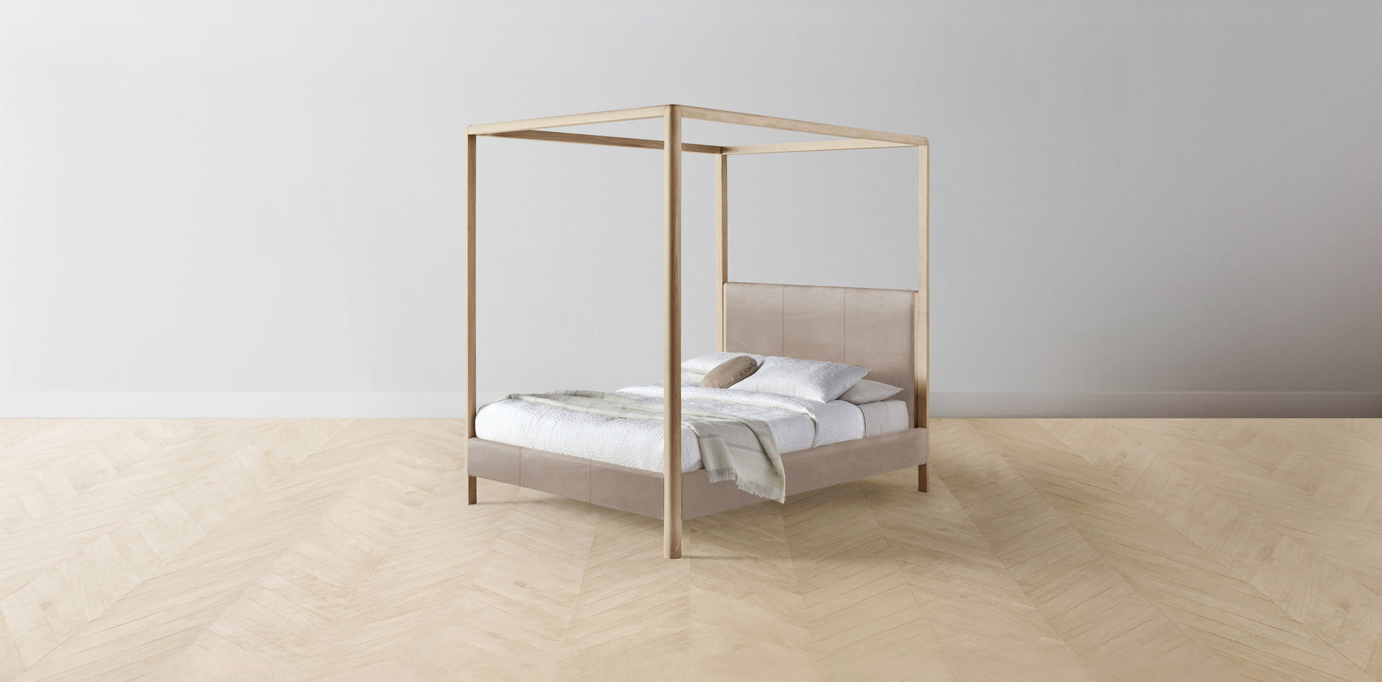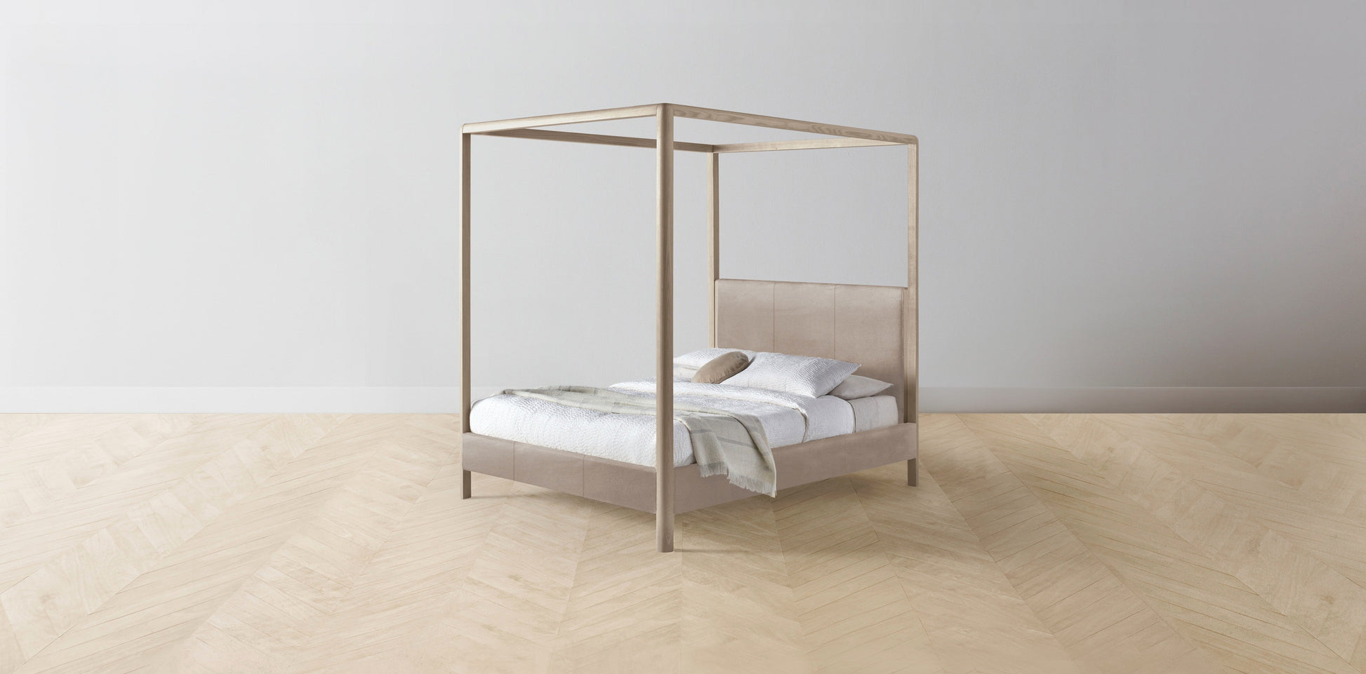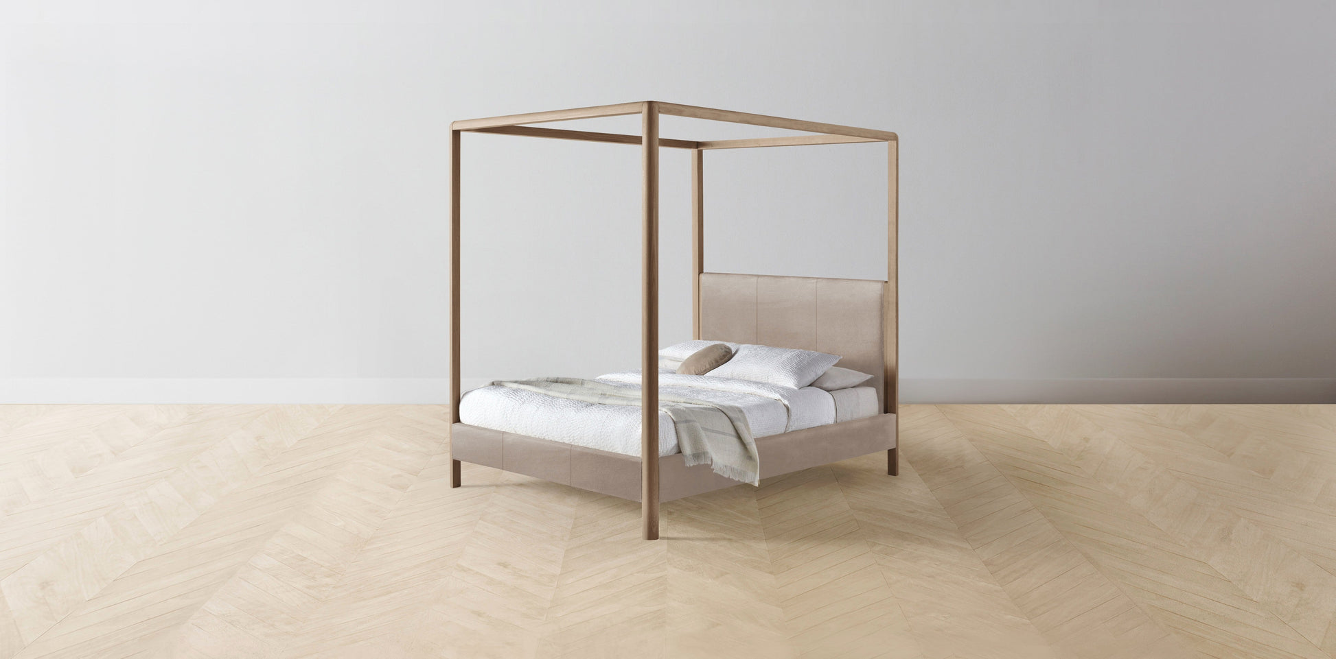 The Thompson - Nubuck Leather Fawn Canopy Bed - 48" Headboard - Muslin on reverse