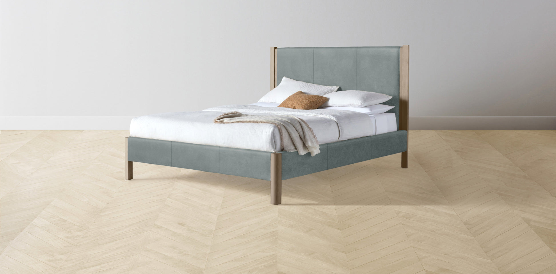 The Thompson - Nubuck Leather Tide Bed - 48" Headboard - Upholstered on reverse