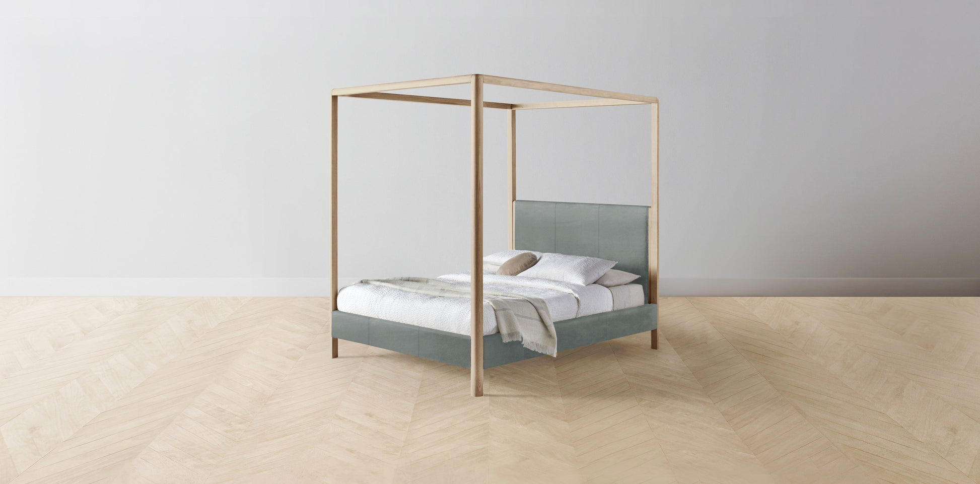 The Thompson - Nubuck Leather Tide Canopy Bed - 48" Headboard - Muslin on reverse