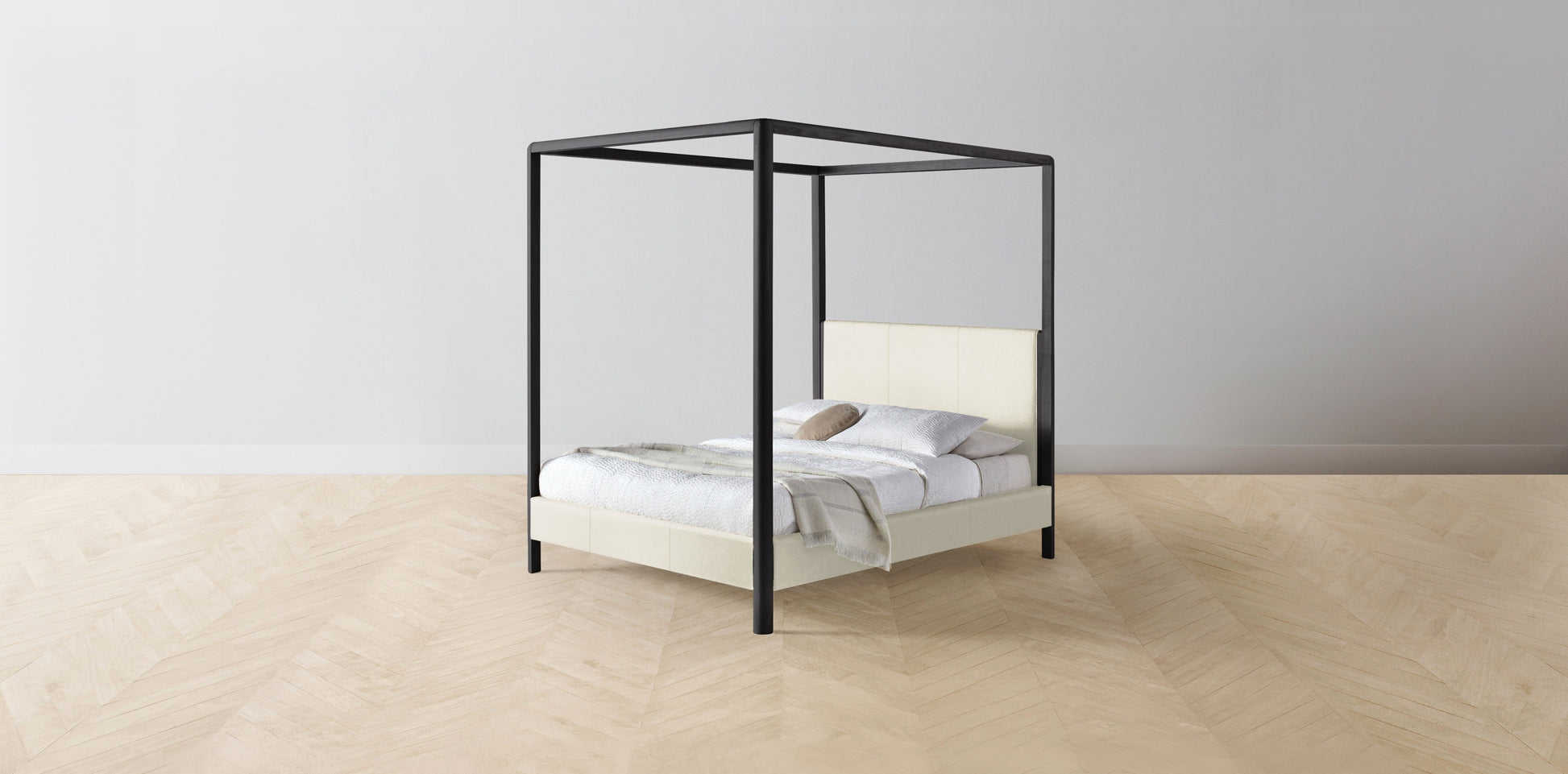 The Thompson - Pebbled Leather Swan Canopy Bed - 48" Headboard - Muslin on reverse