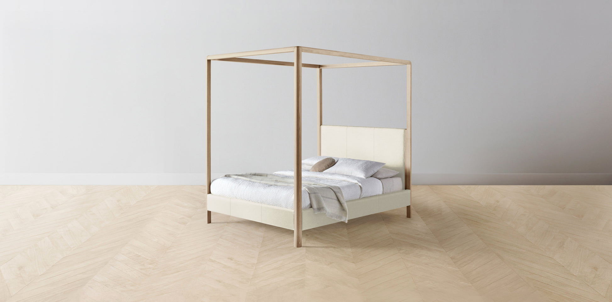 The Thompson - Pebbled Leather Swan Canopy Bed - 48" Headboard - Upholstered on reverse
