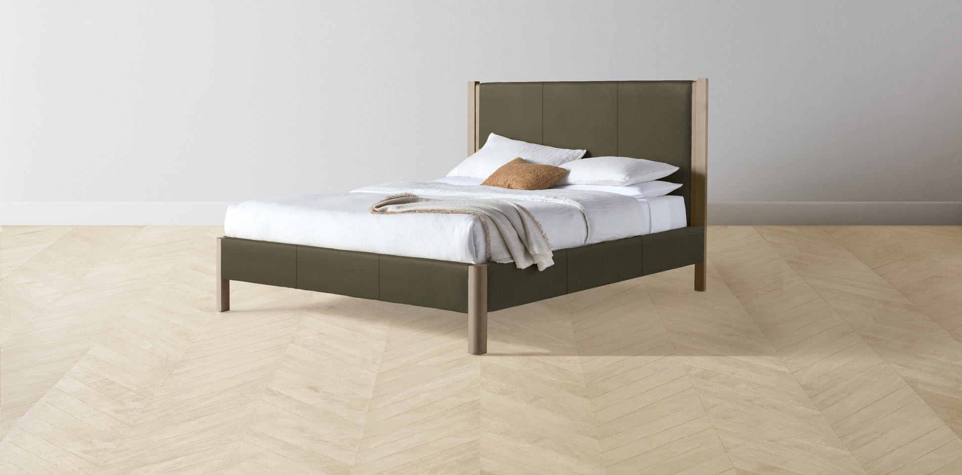 The Thompson - Pebbled Leather Truffle Bed - 48" Headboard - Upholstered on reverse