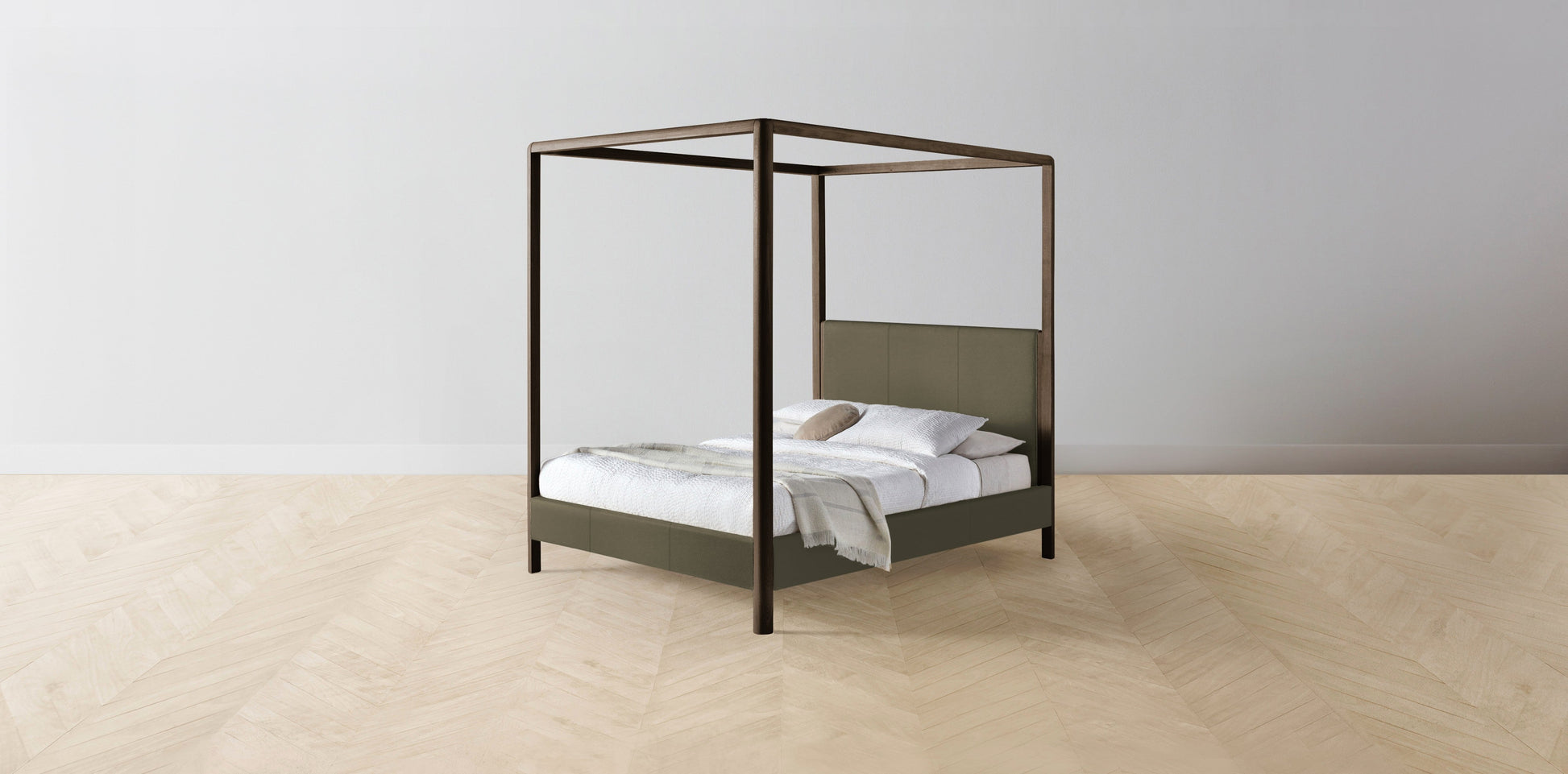 The Thompson - Pebbled Leather Truffle Canopy Bed - 48" Headboard - Upholstered on reverse