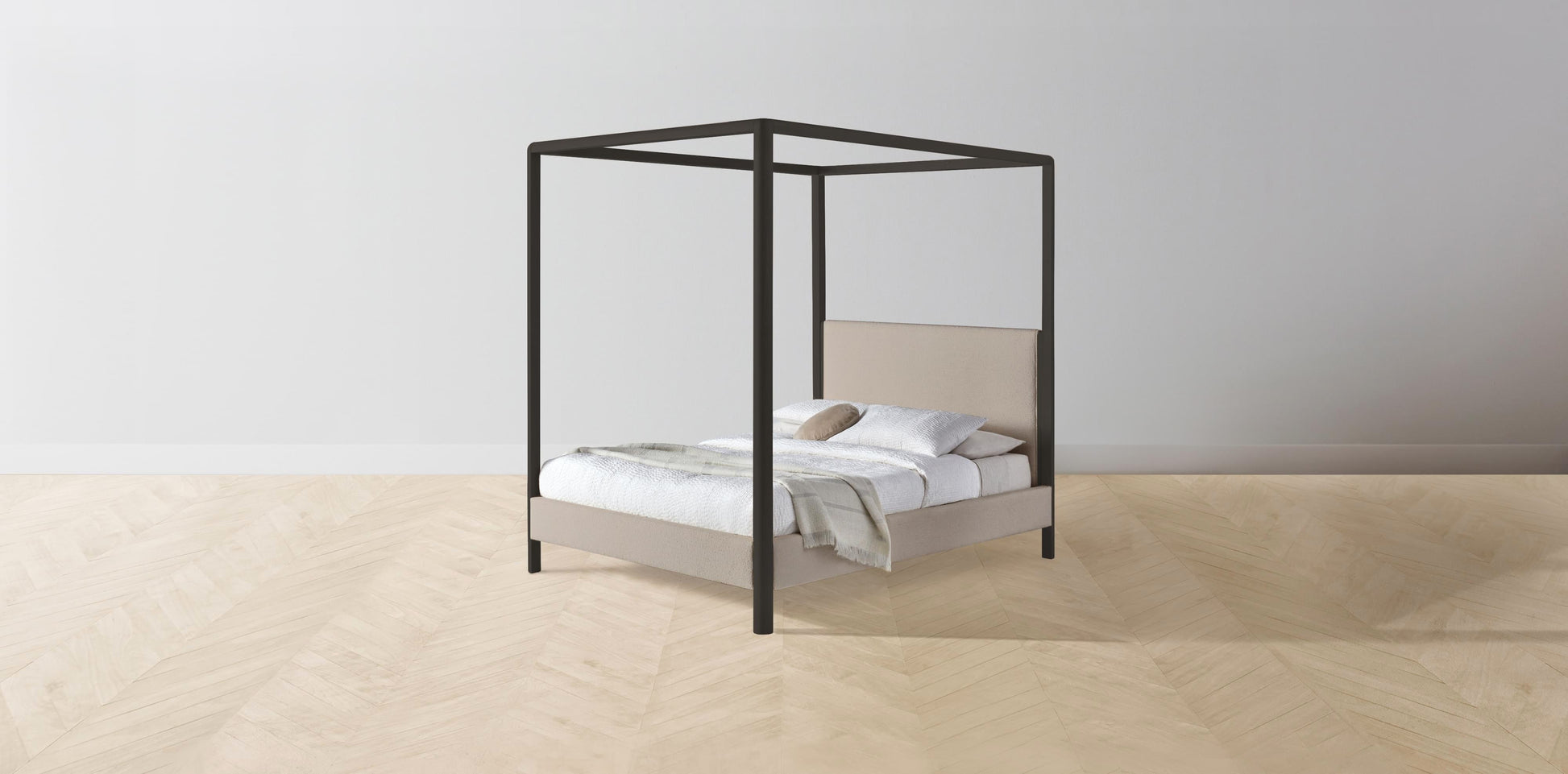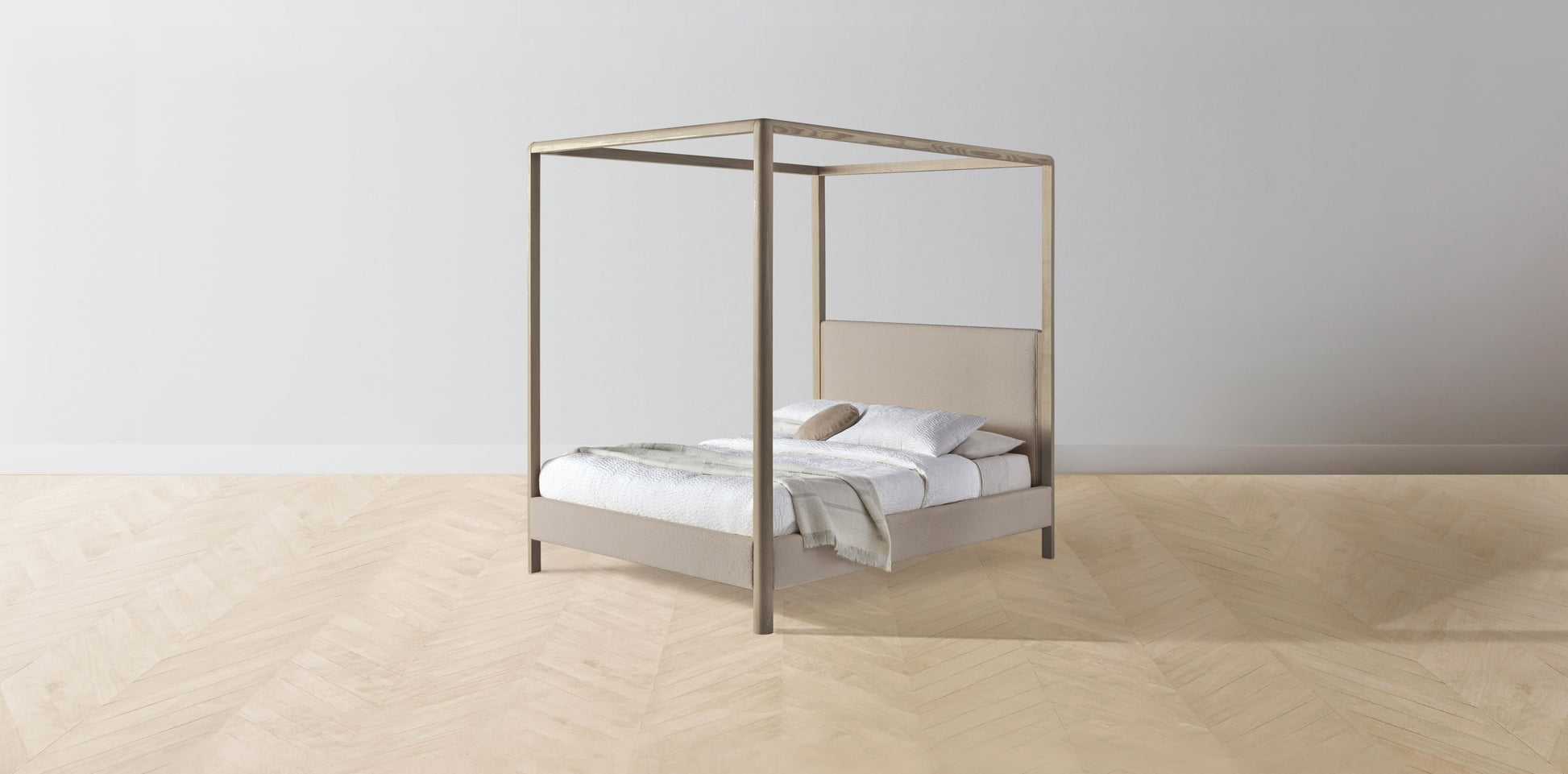 The Thompson - Performance Bouclé Morel Canopy Bed - 48" Headboard - Upholstered on reverse