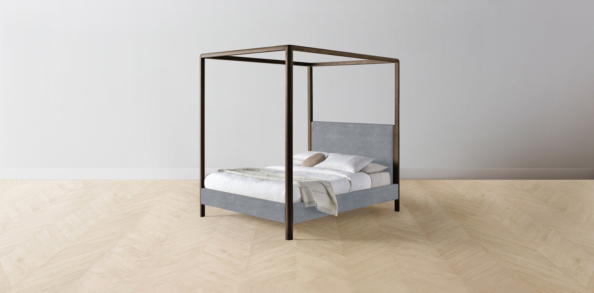 The Thompson - Performance Melange Weave Aegean Canopy Bed - 48" Headboard - Muslin on reverse