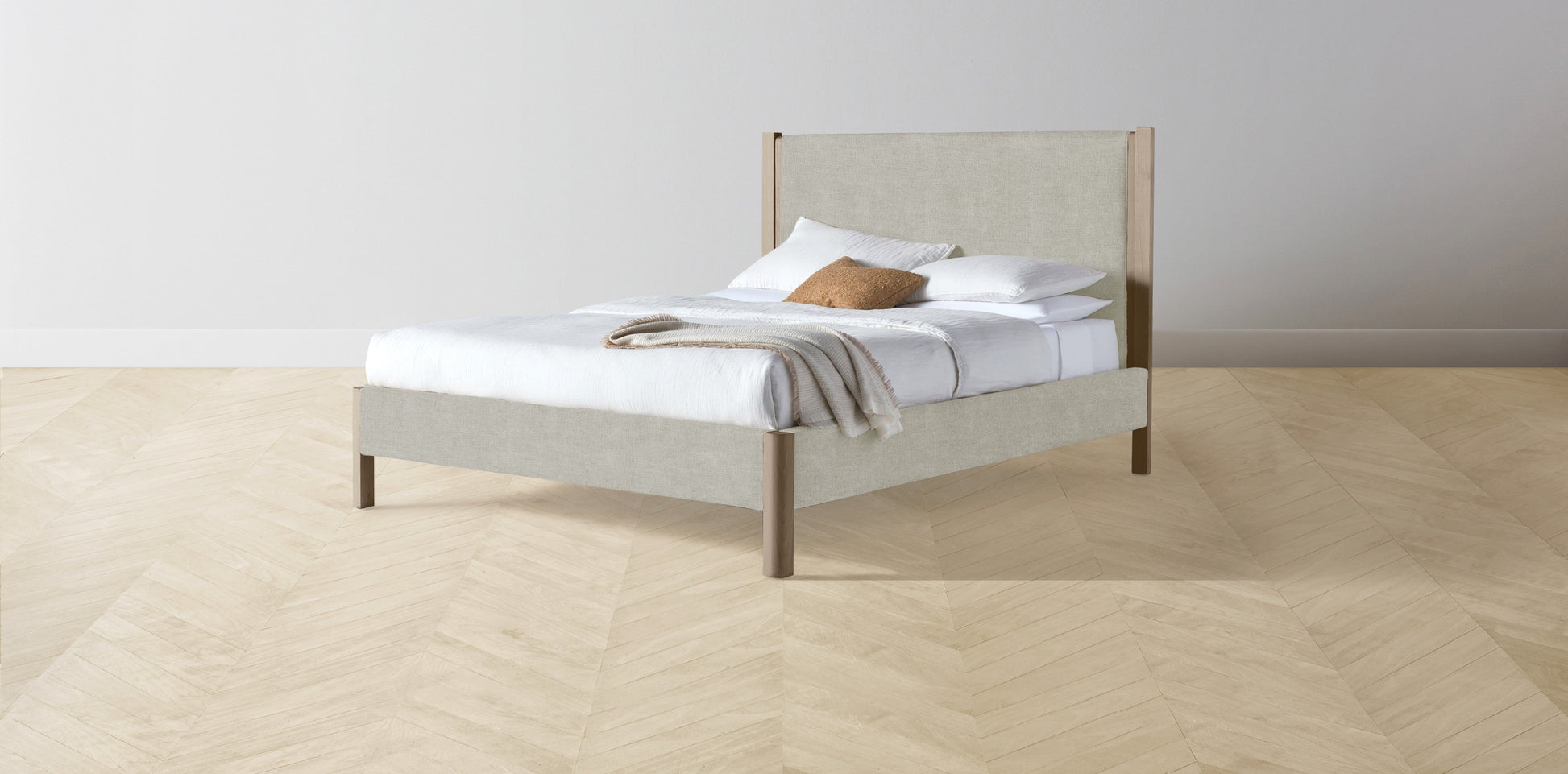 The Thompson - Performance Melange Weave Flint Bed - 48" Headboard - Muslin on reverse