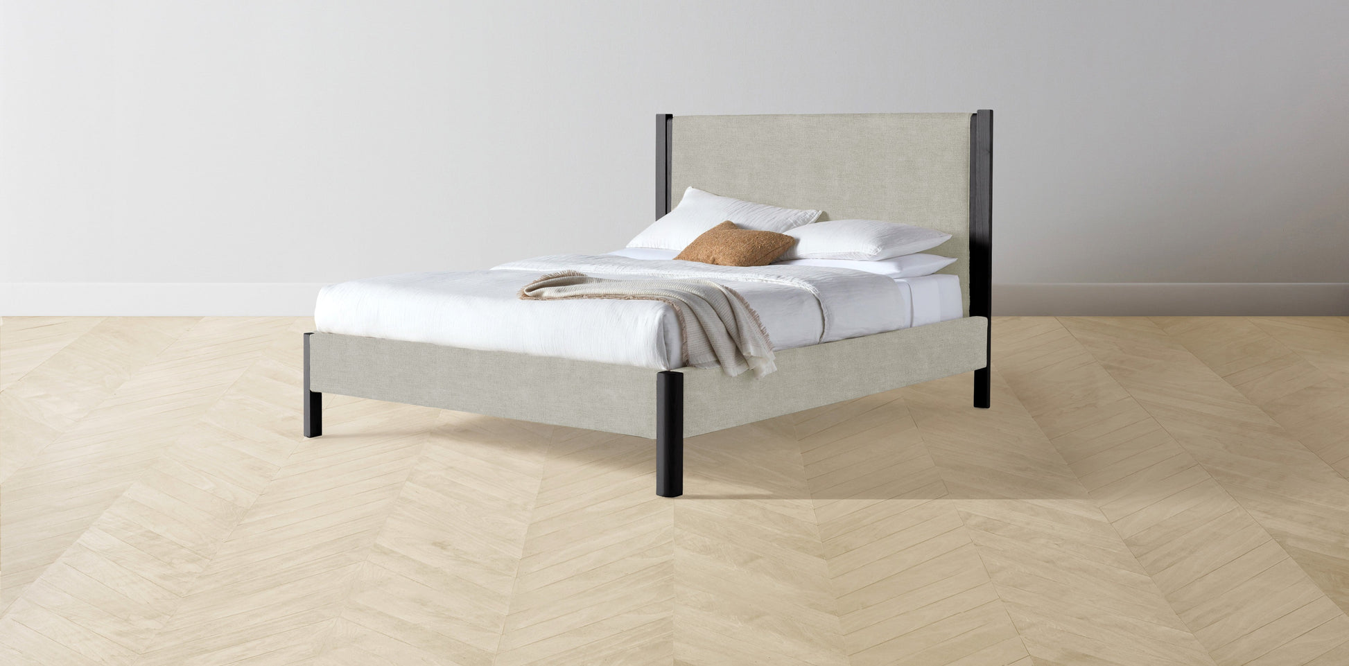 The Thompson - Performance Melange Weave Flint Bed - 48" Headboard - Upholstered on reverse