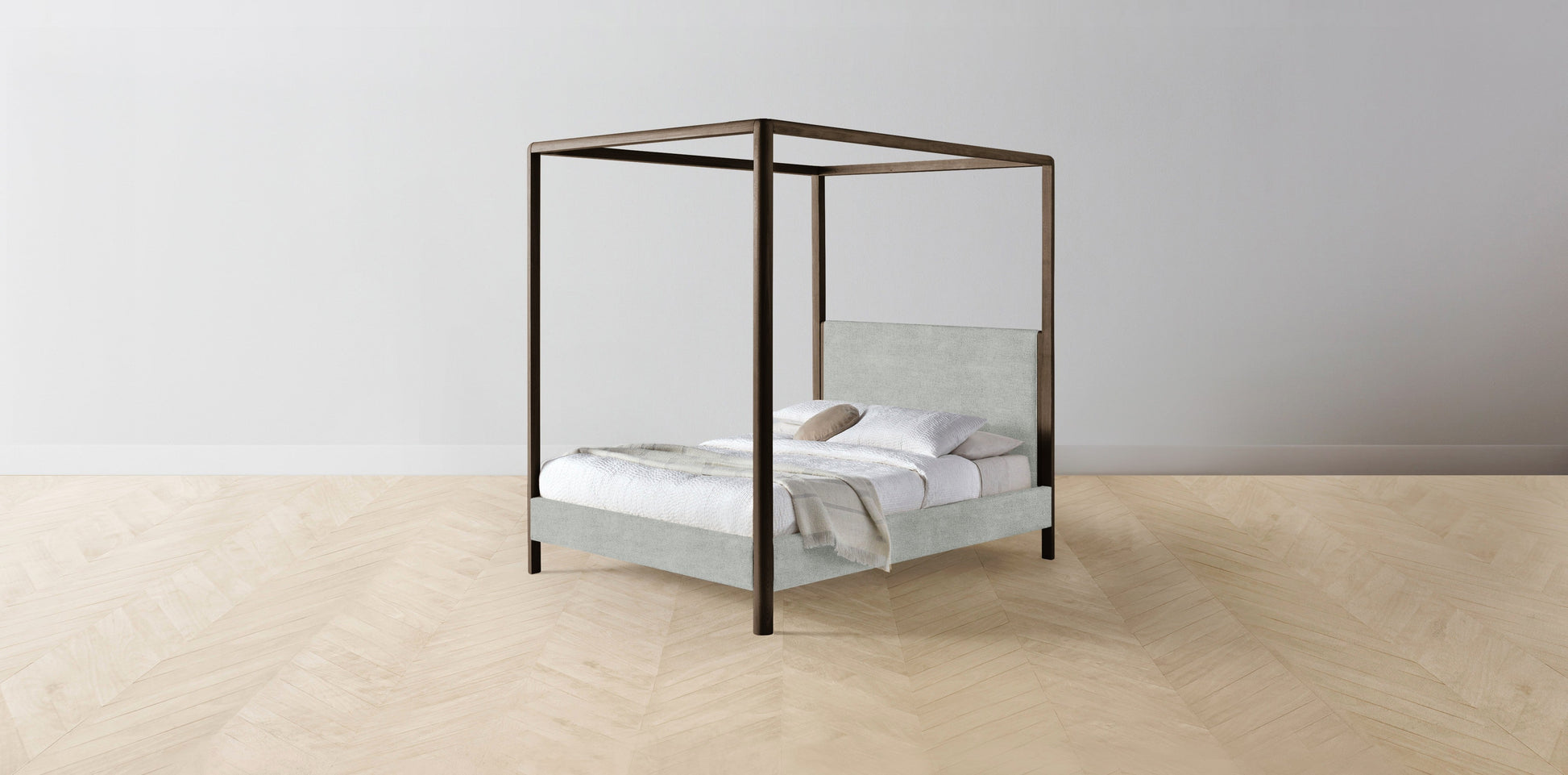 The Thompson - Performance Melange Weave Seaglass Canopy Bed - 48" Headboard - Upholstered on reverse