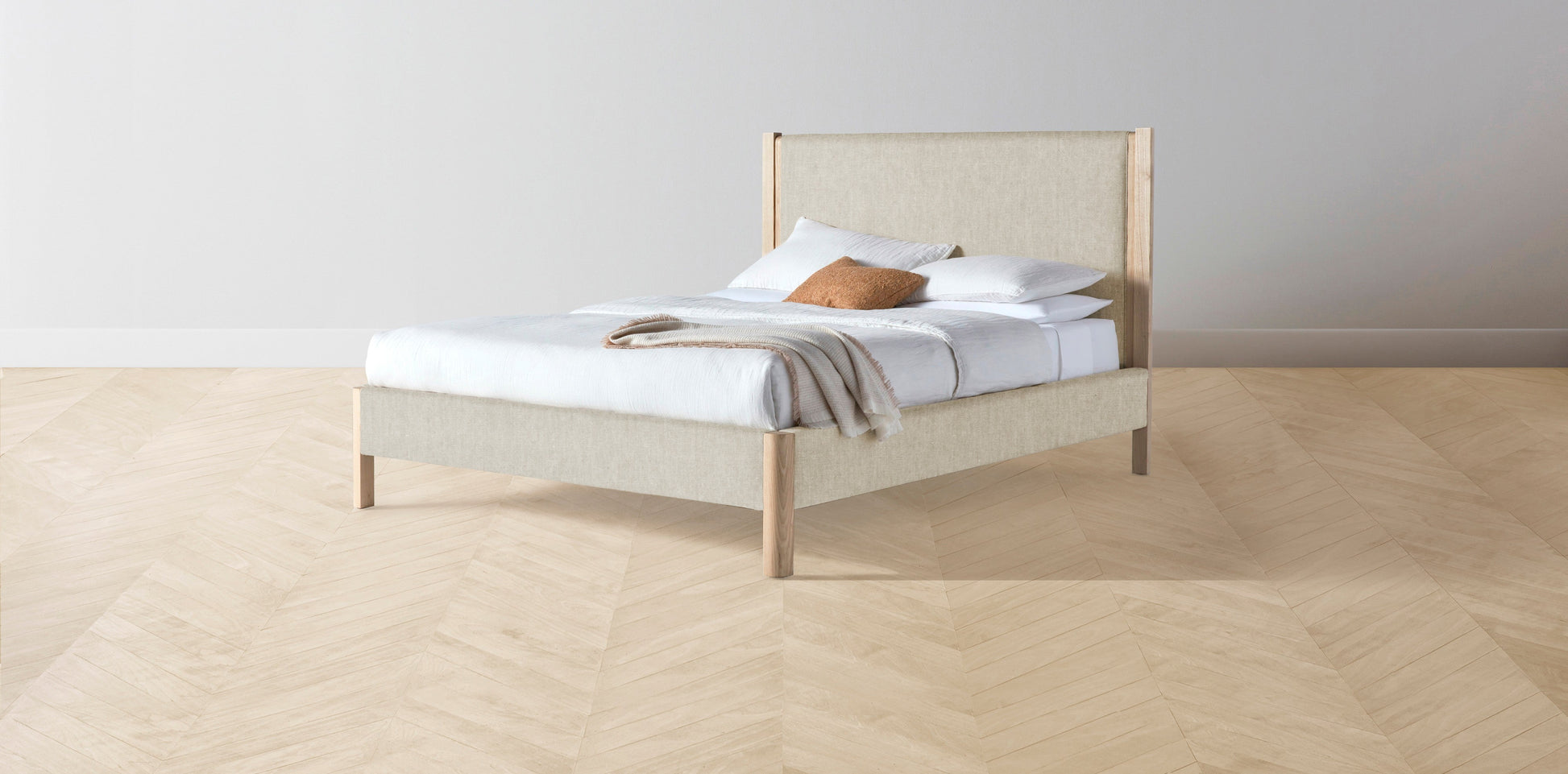 The Thompson - Performance Stonewashed Linen Clamshell Bed - 48" Headboard - Muslin on reverse