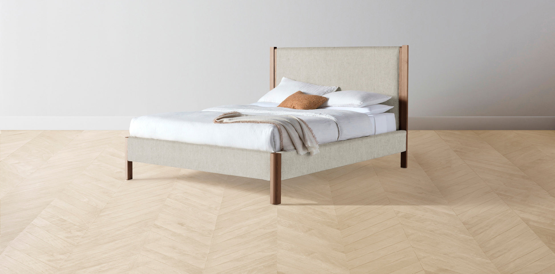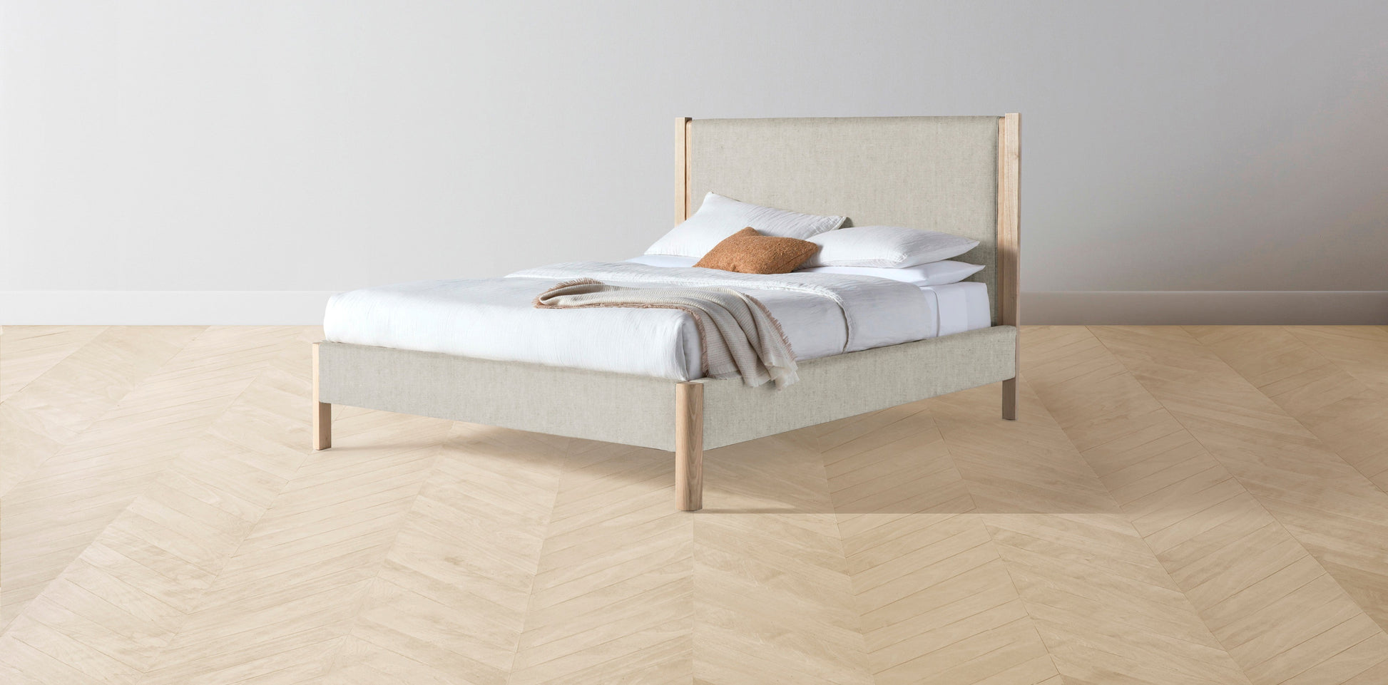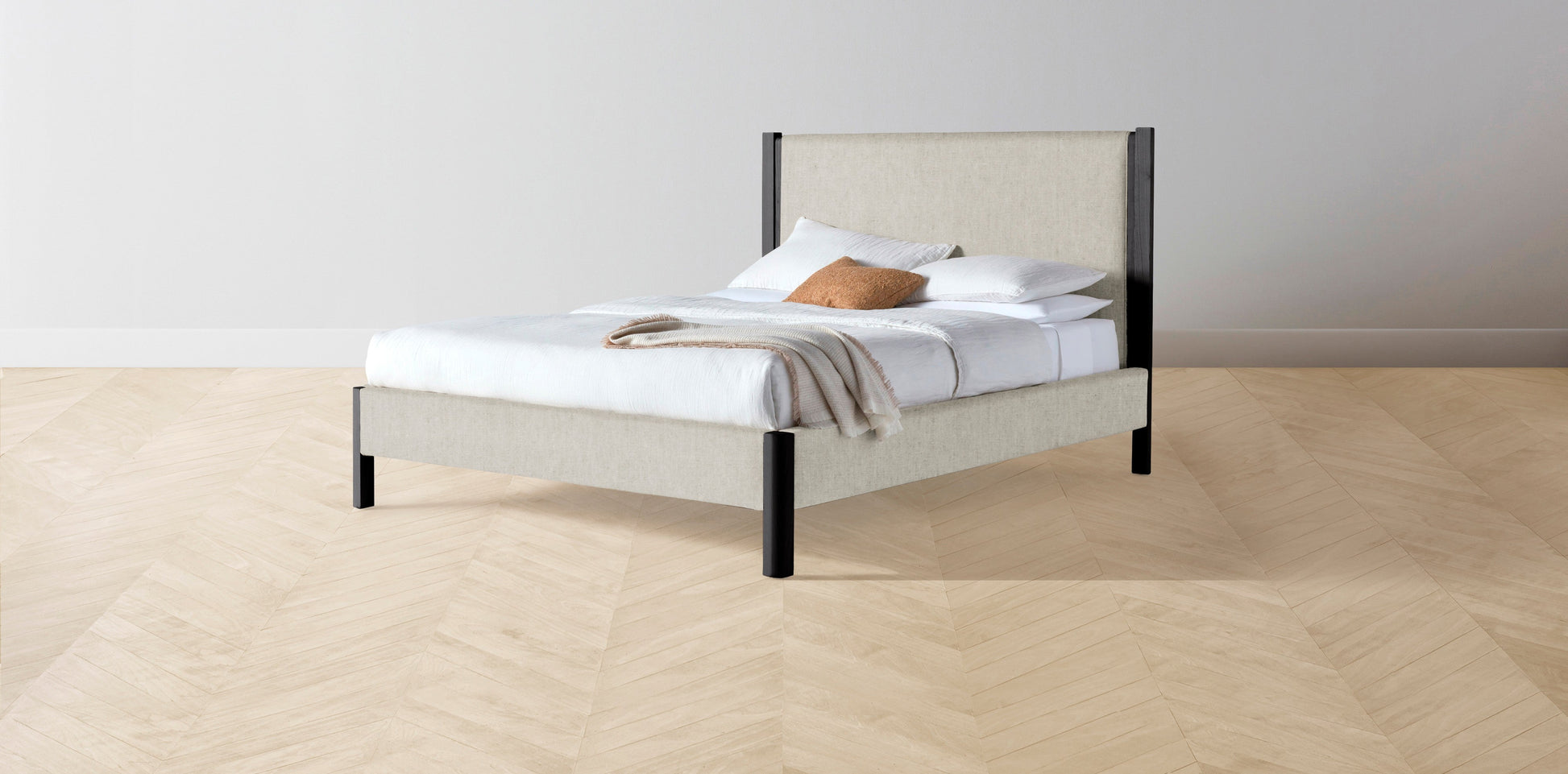 The Thompson - Performance Stonewashed Linen Dew Bed - 48" Headboard - Upholstered on reverse