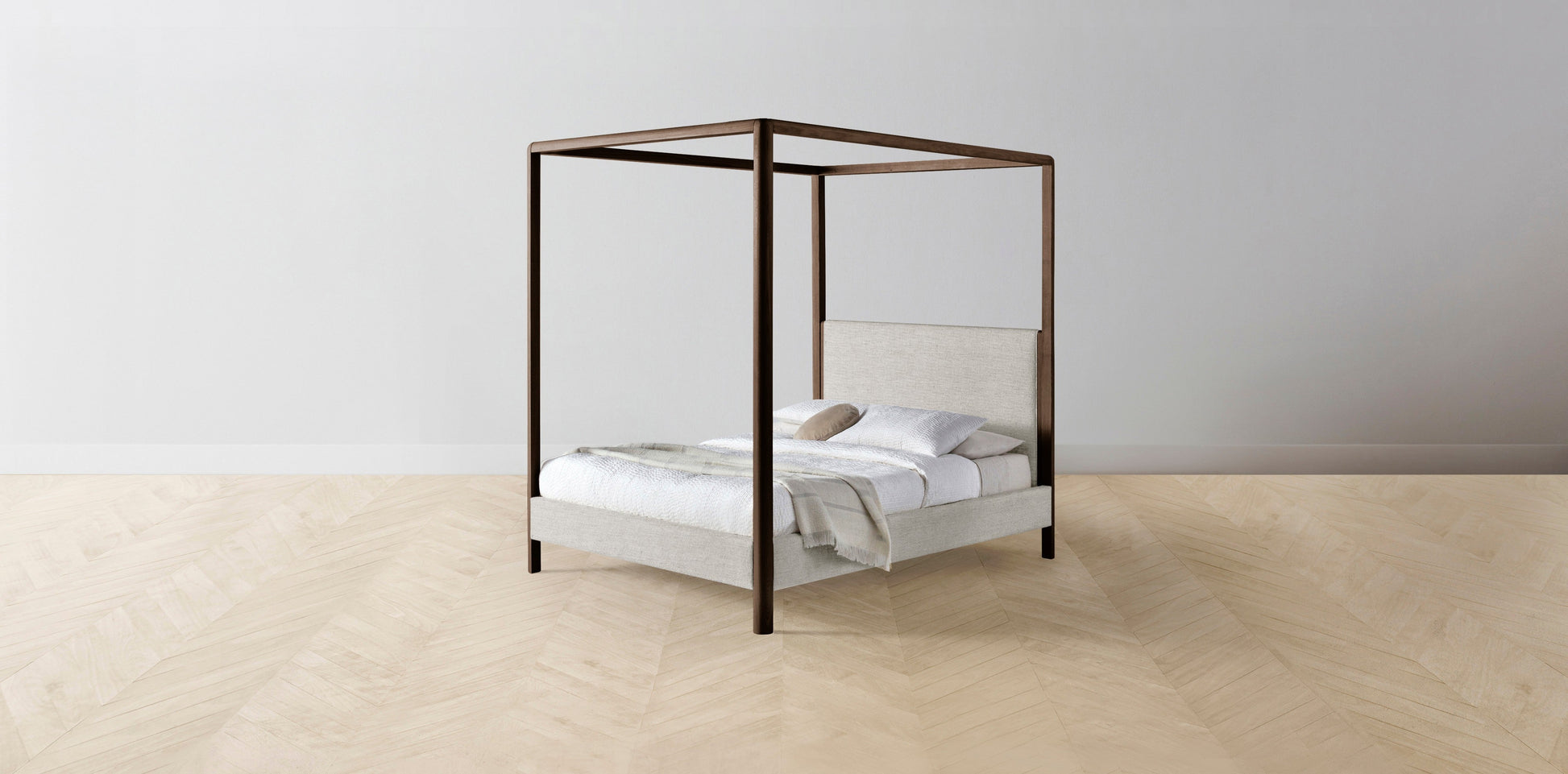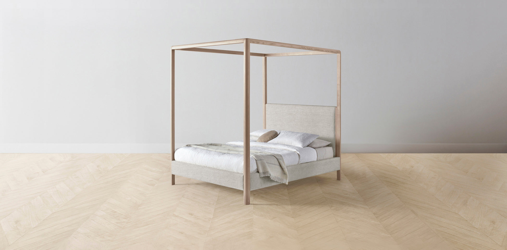 The Thompson - Performance Stonewashed Linen Dew Canopy Bed - 48" Headboard - Muslin on reverse