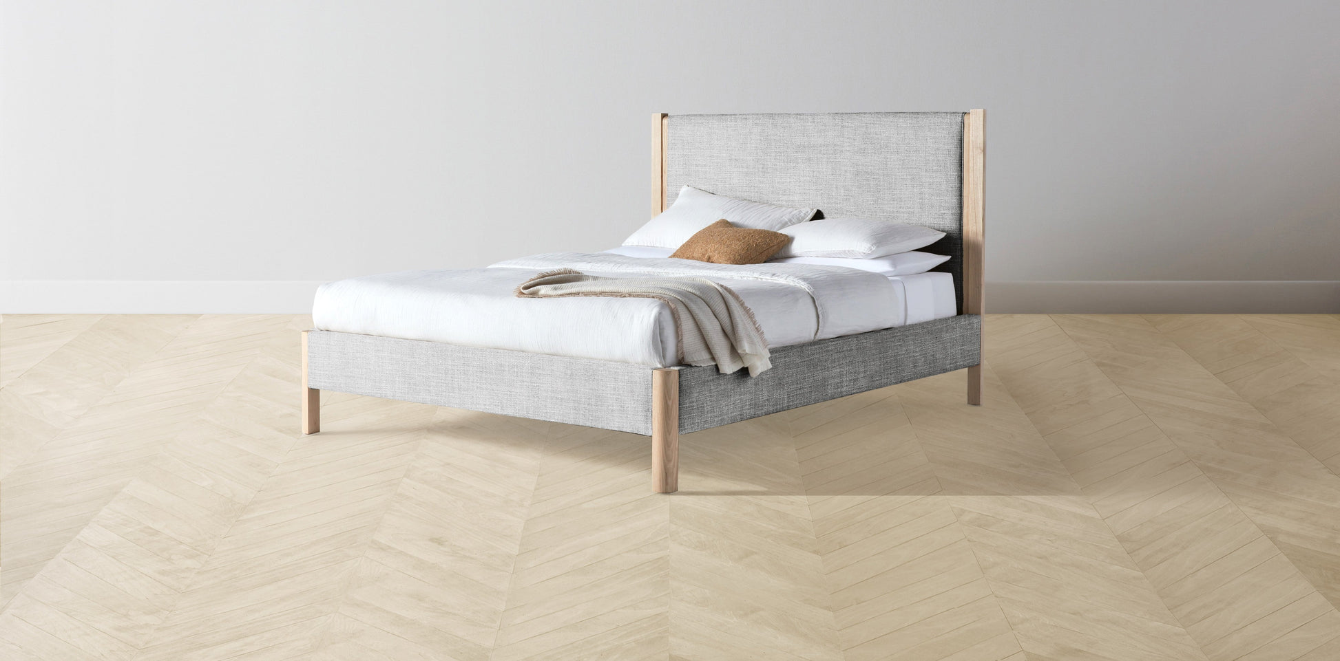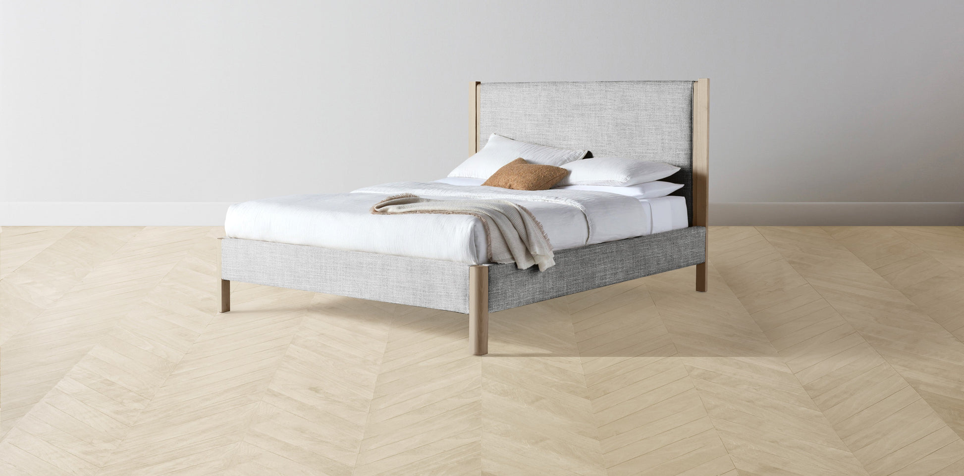 The Thompson - Performance Textured Tweed Alpine Bed - 48" Headboard - Muslin on reverse