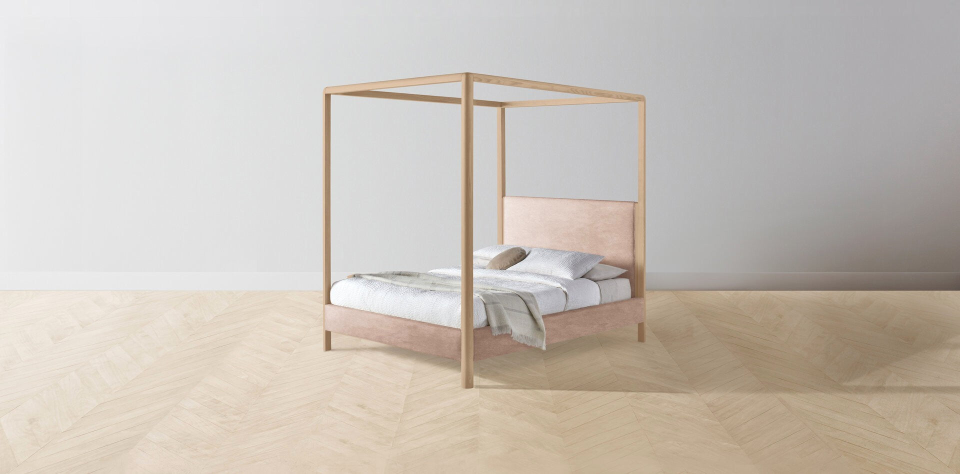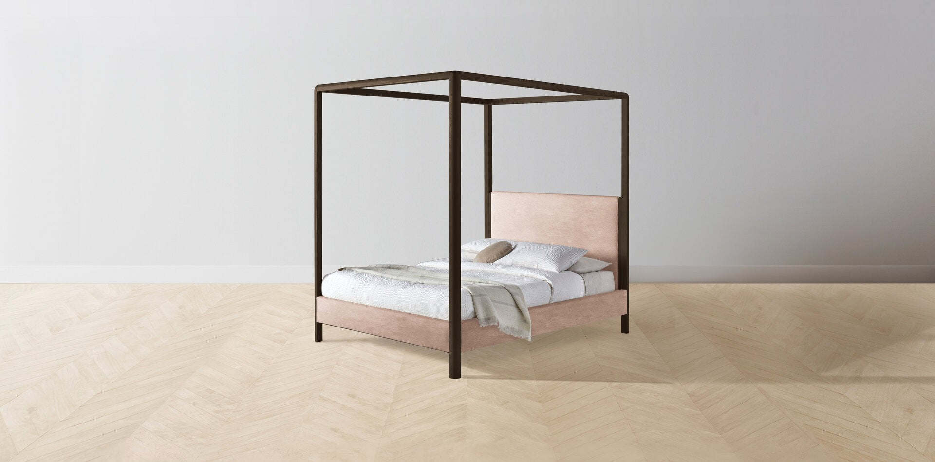 The Thompson - Performance Velvet Dusty Rose Canopy Bed - 48" Headboard - Upholstered on reverse