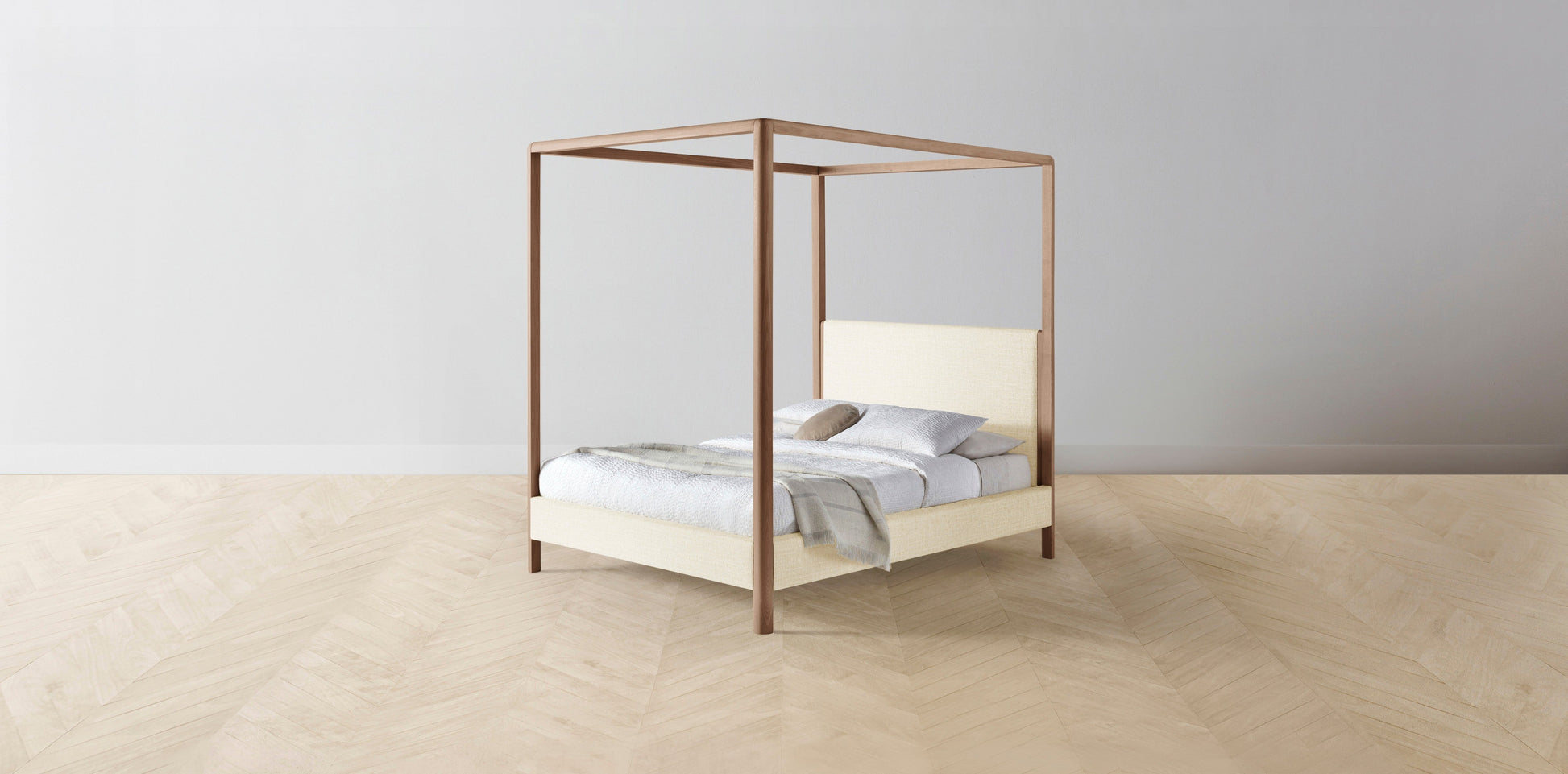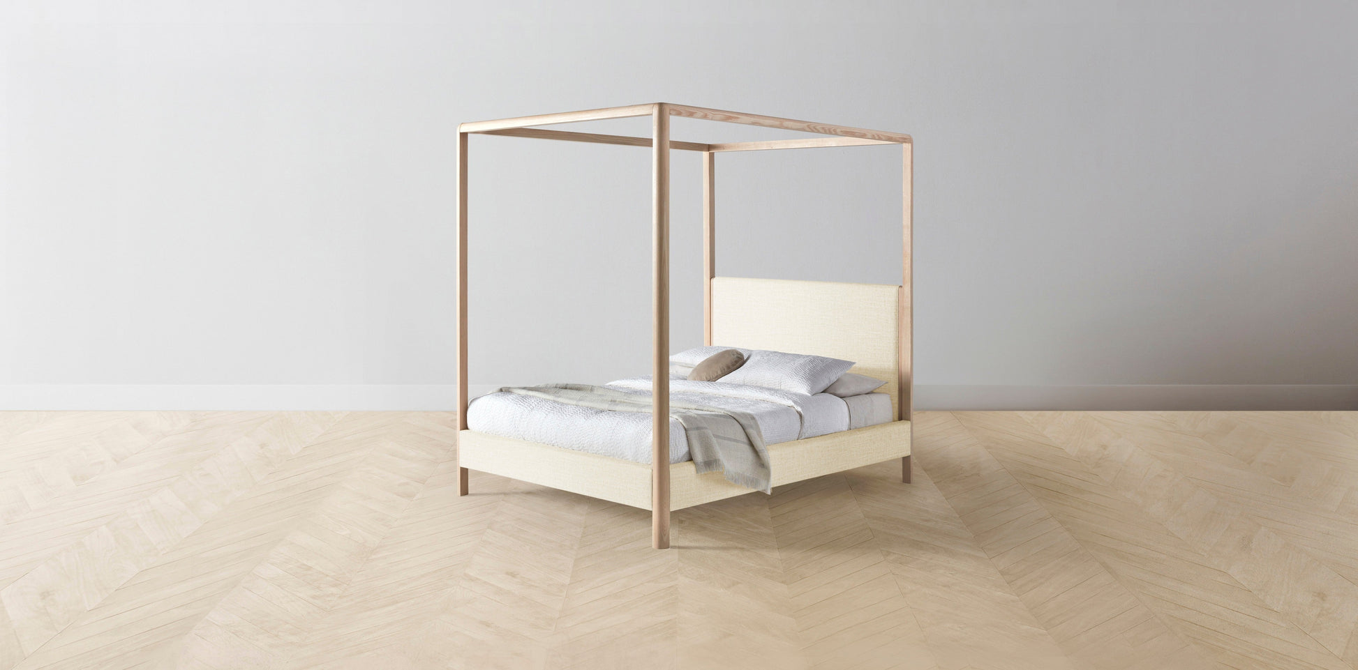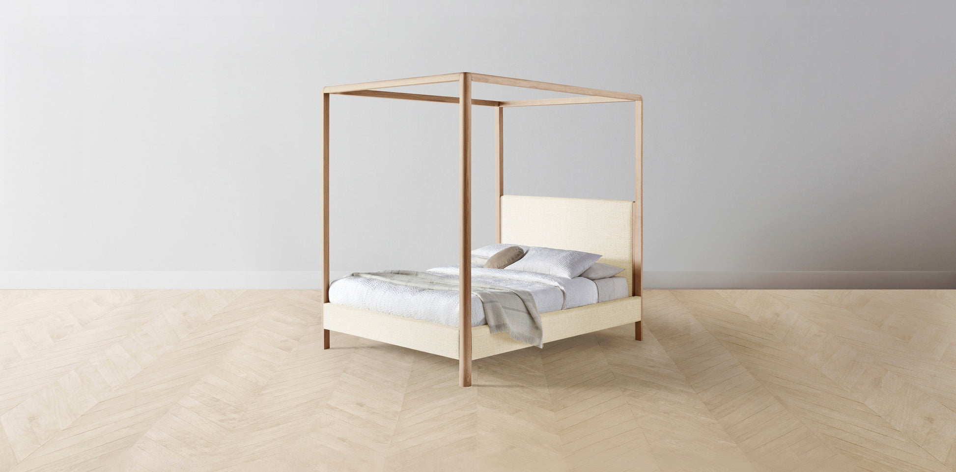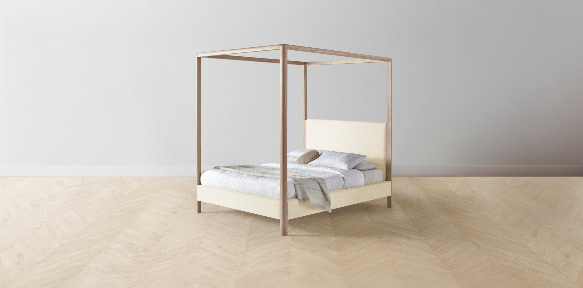 The Thompson - Performance Woven Chenille Desert Canopy Bed - 48" Headboard - Muslin on reverse