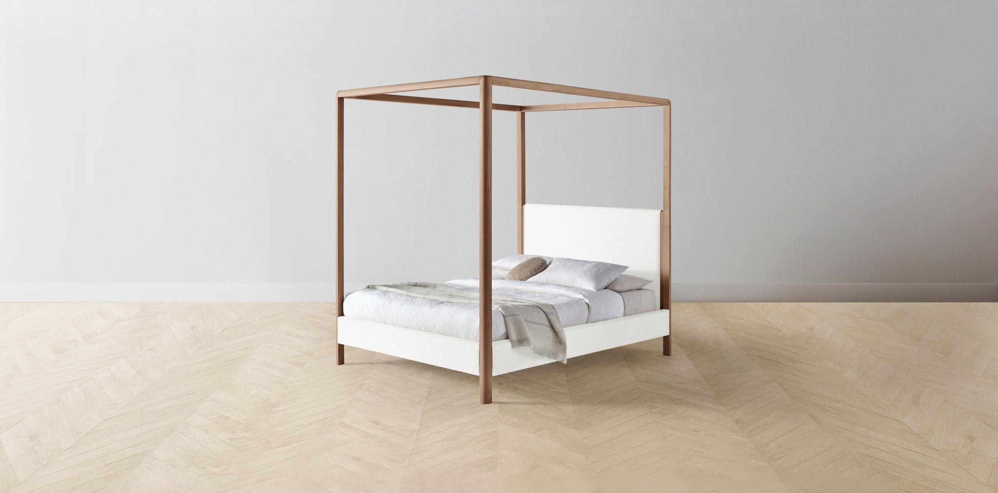 The Thompson - Performance Woven Chenille Lace Canopy Bed - 48" Headboard - Muslin on reverse