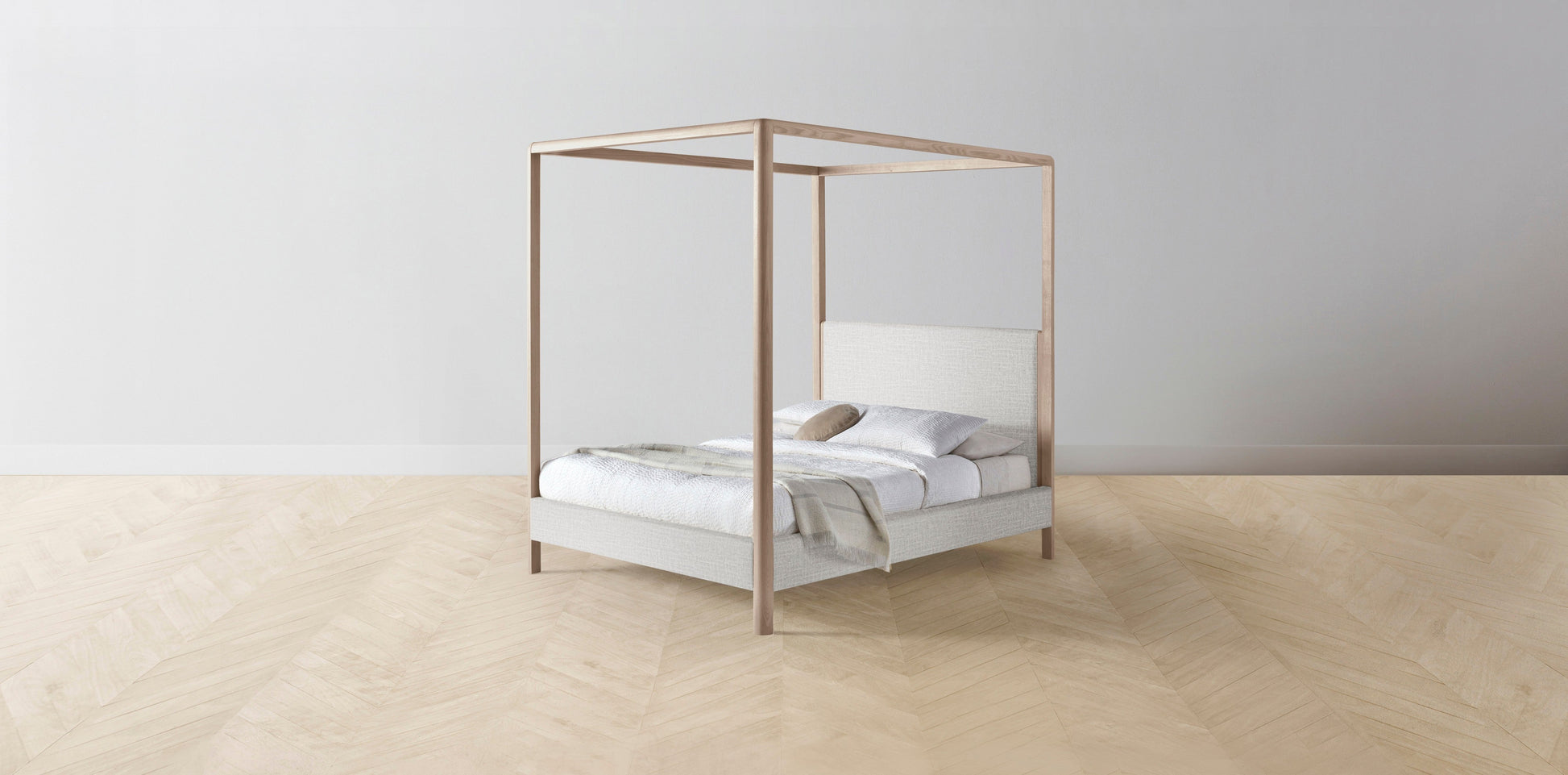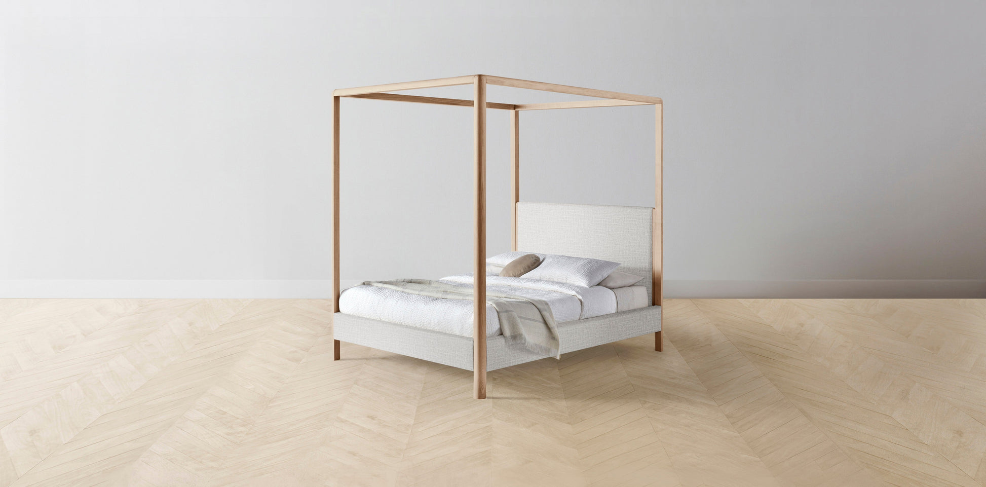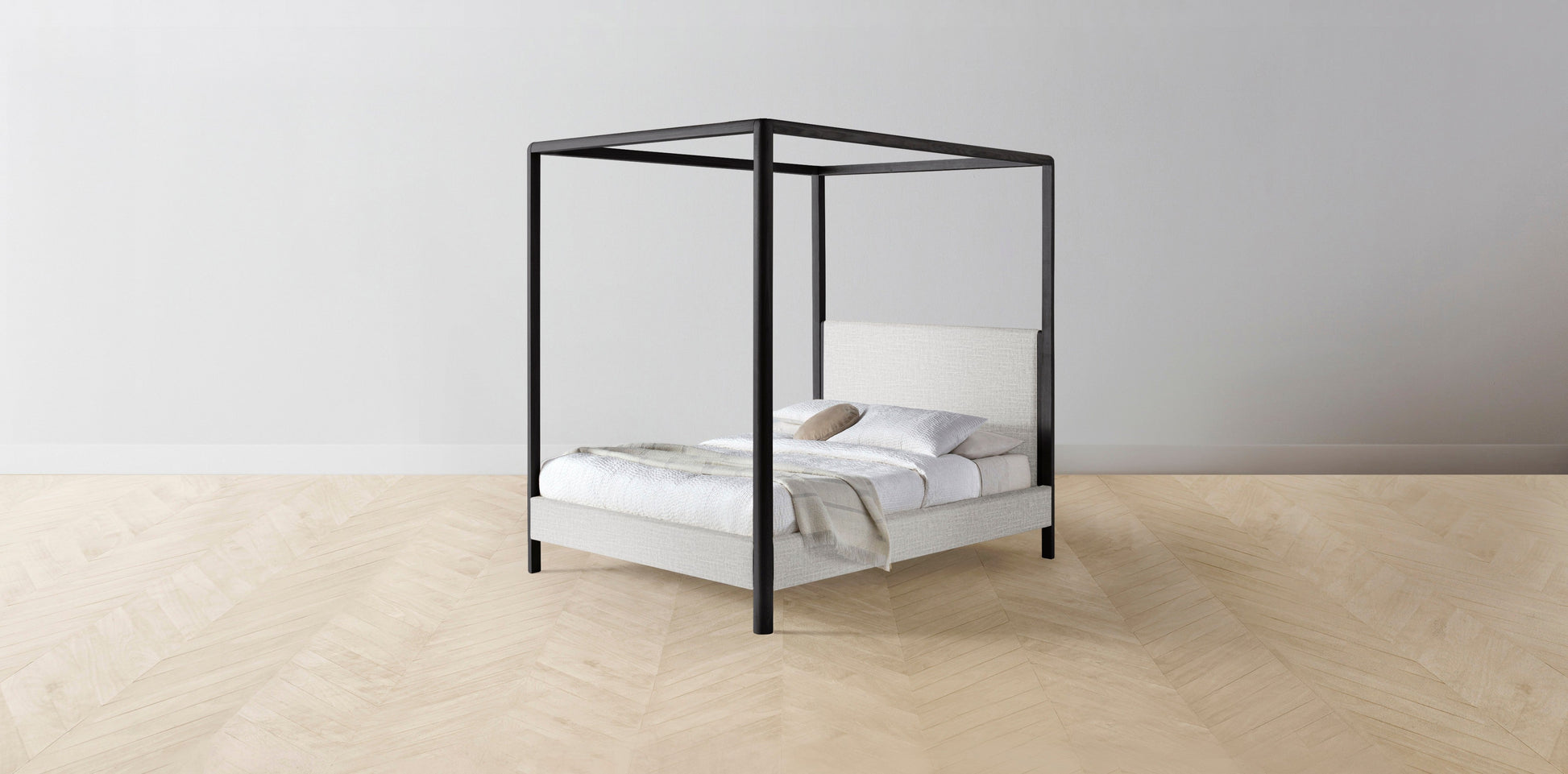 The Thompson - Performance Woven Chenille Steel Canopy Bed - 48" Headboard - Upholstered on reverse