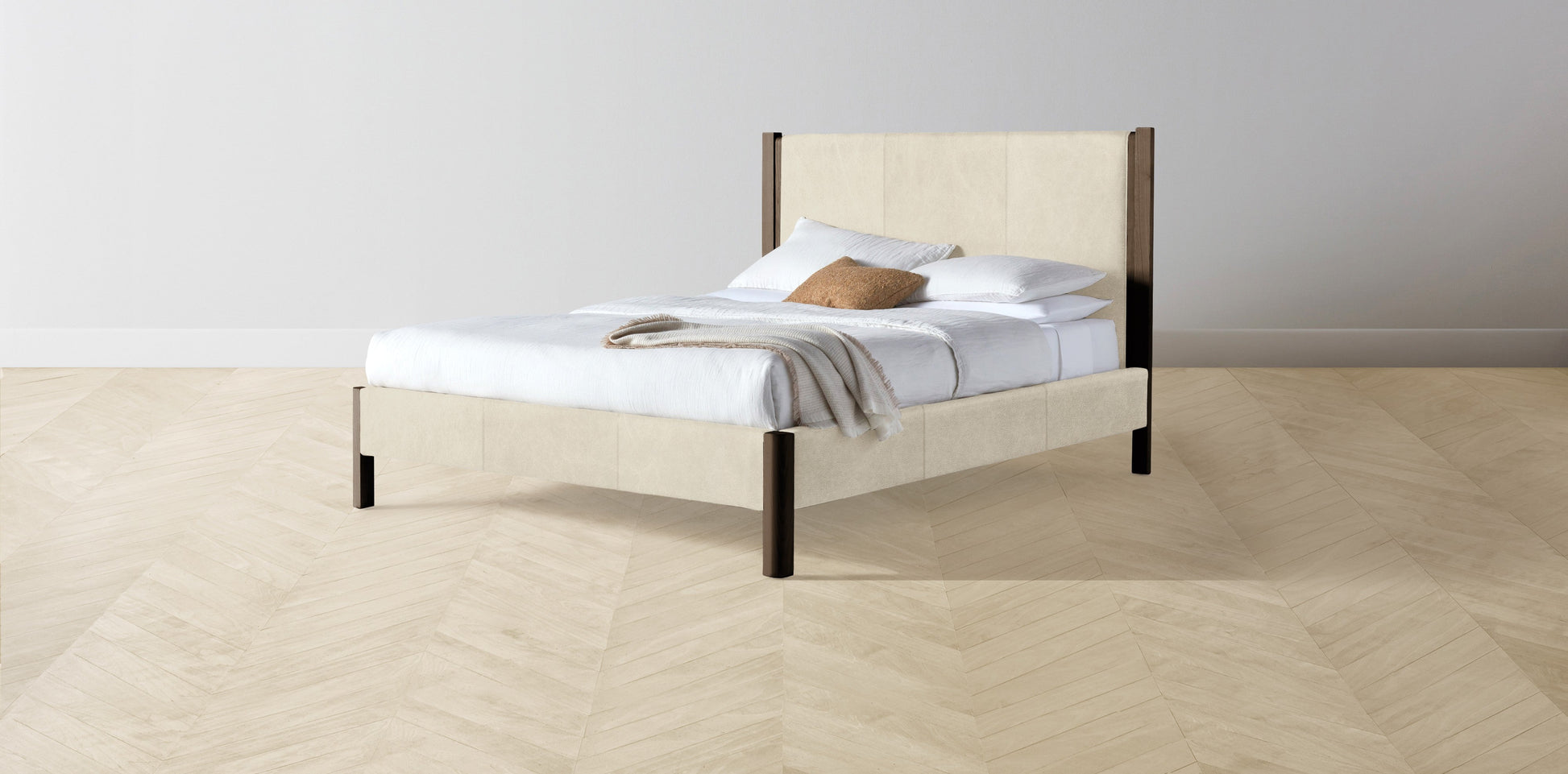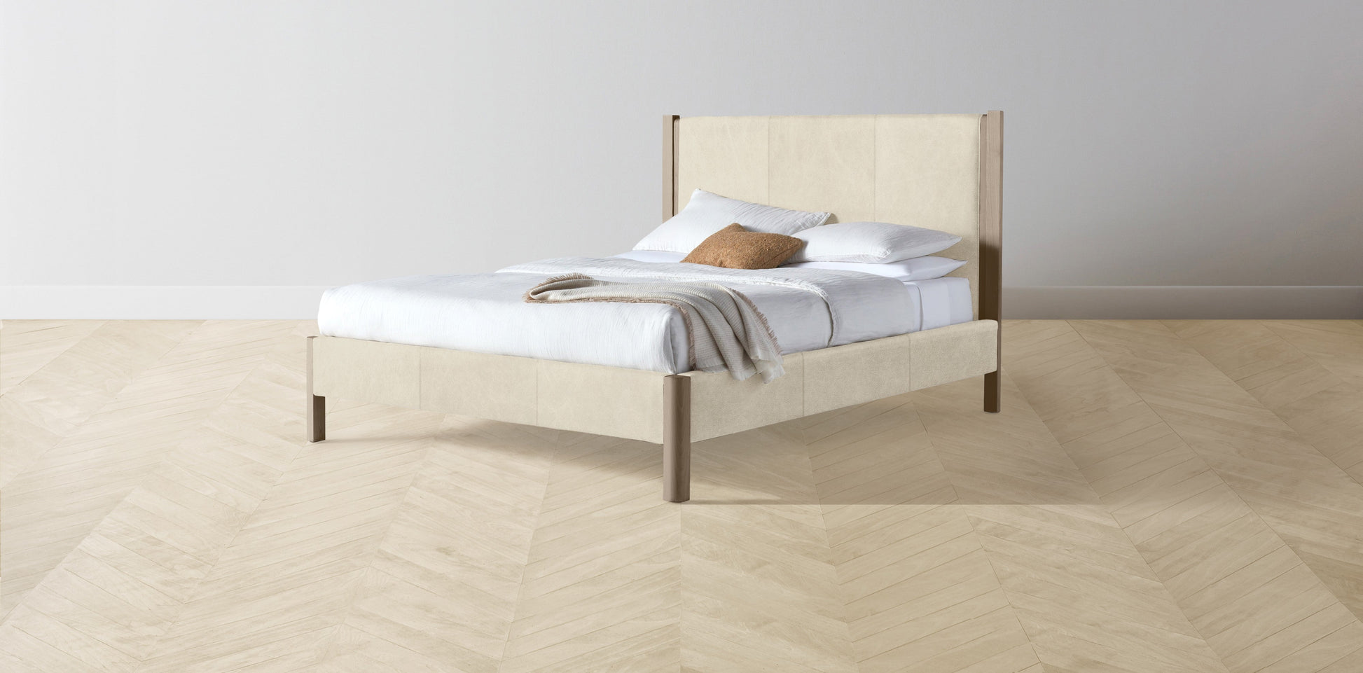 The Thompson - Tuscan Leather Bisque Bed - 48" Headboard - Upholstered on reverse