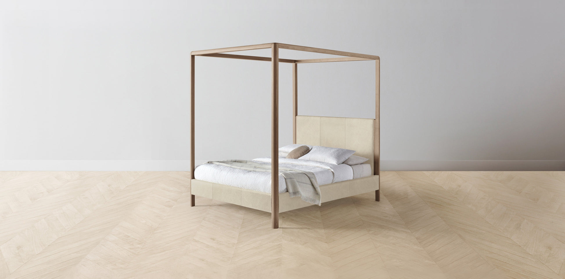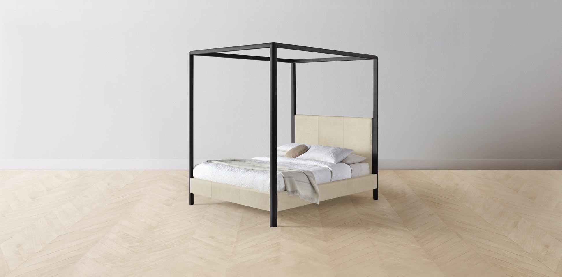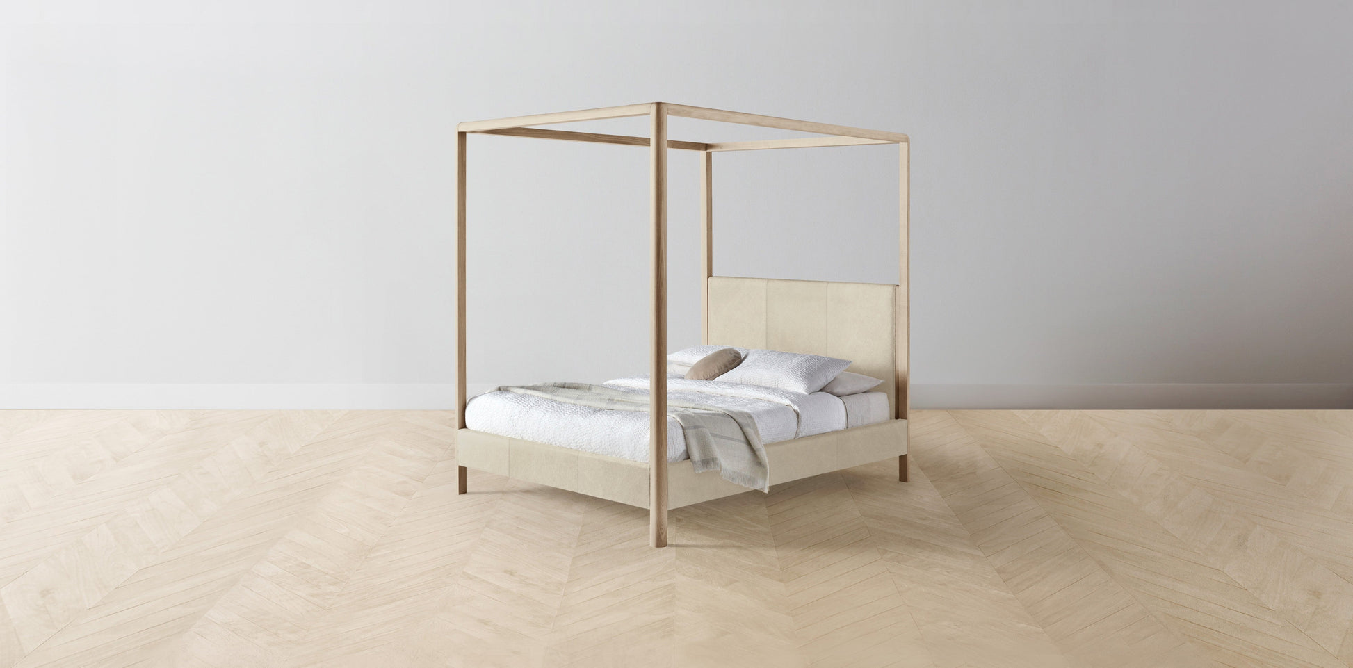 The Thompson - Tuscan Leather Bisque Canopy Bed - 48" Headboard - Muslin on reverse