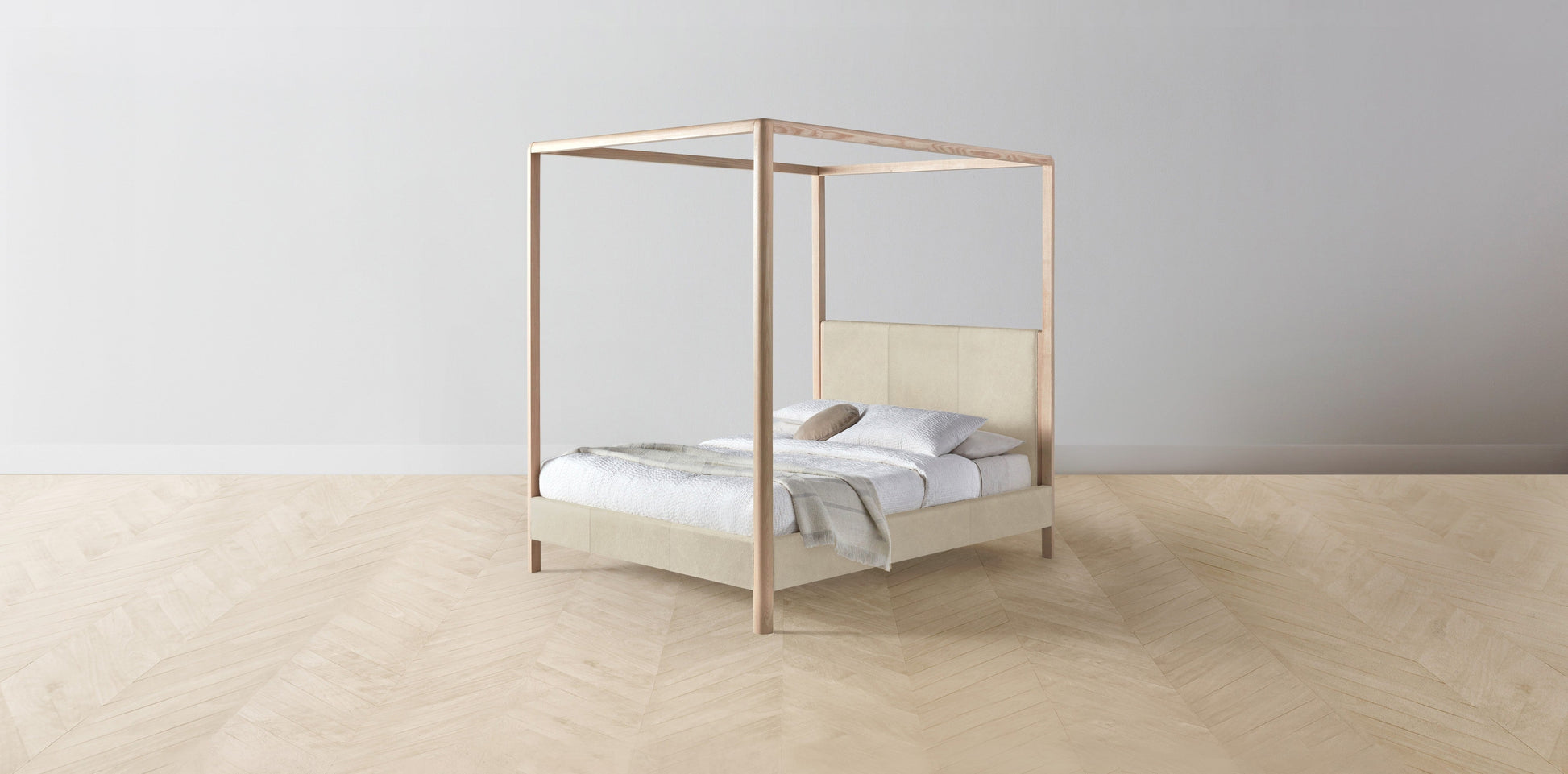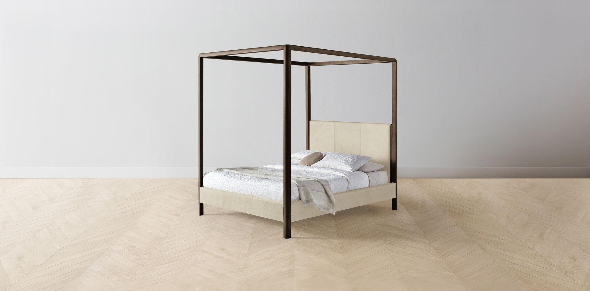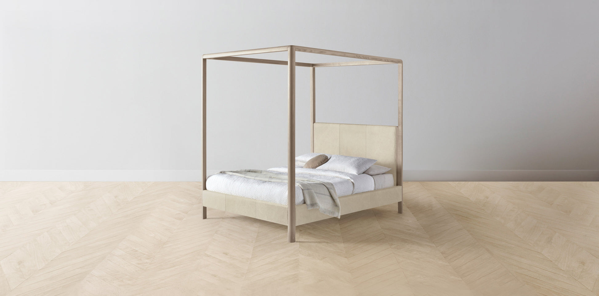 The Thompson - Tuscan Leather Bisque Canopy Bed - 48" Headboard - Upholstered on reverse