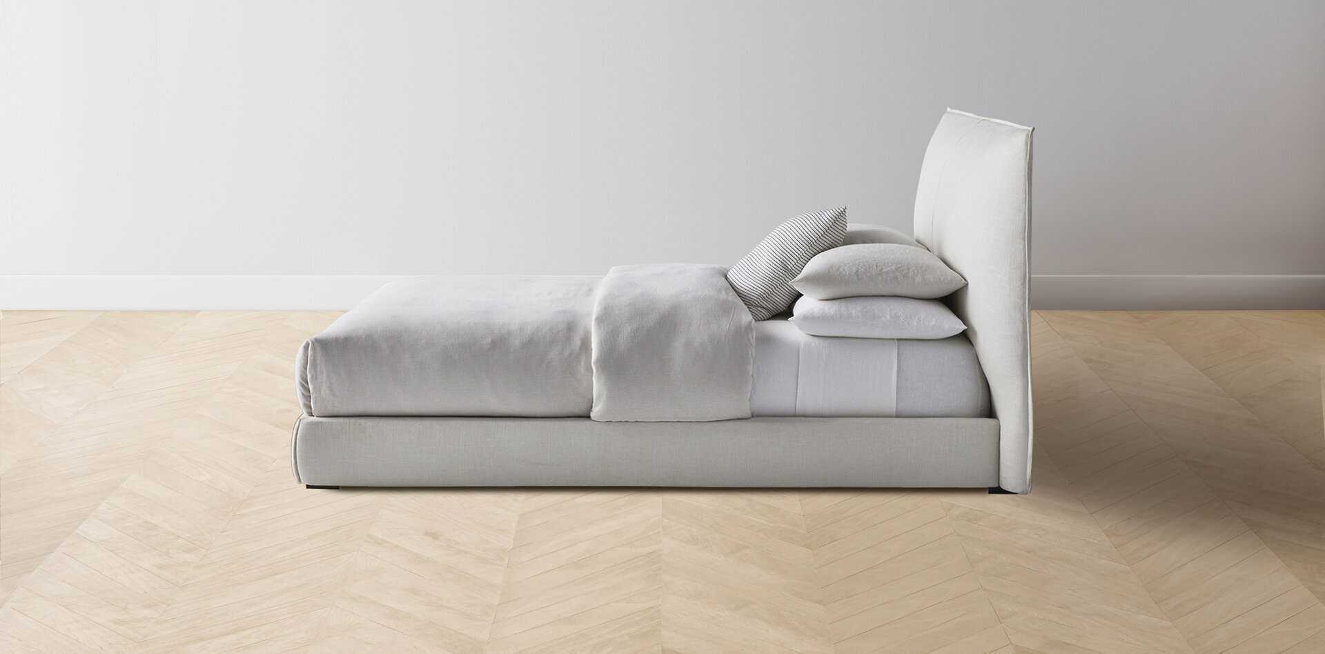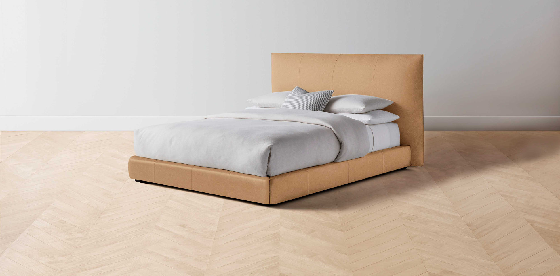 The Wythe - Pebbled Leather Latte Bed - 44" Headboard - Muslin on reverse